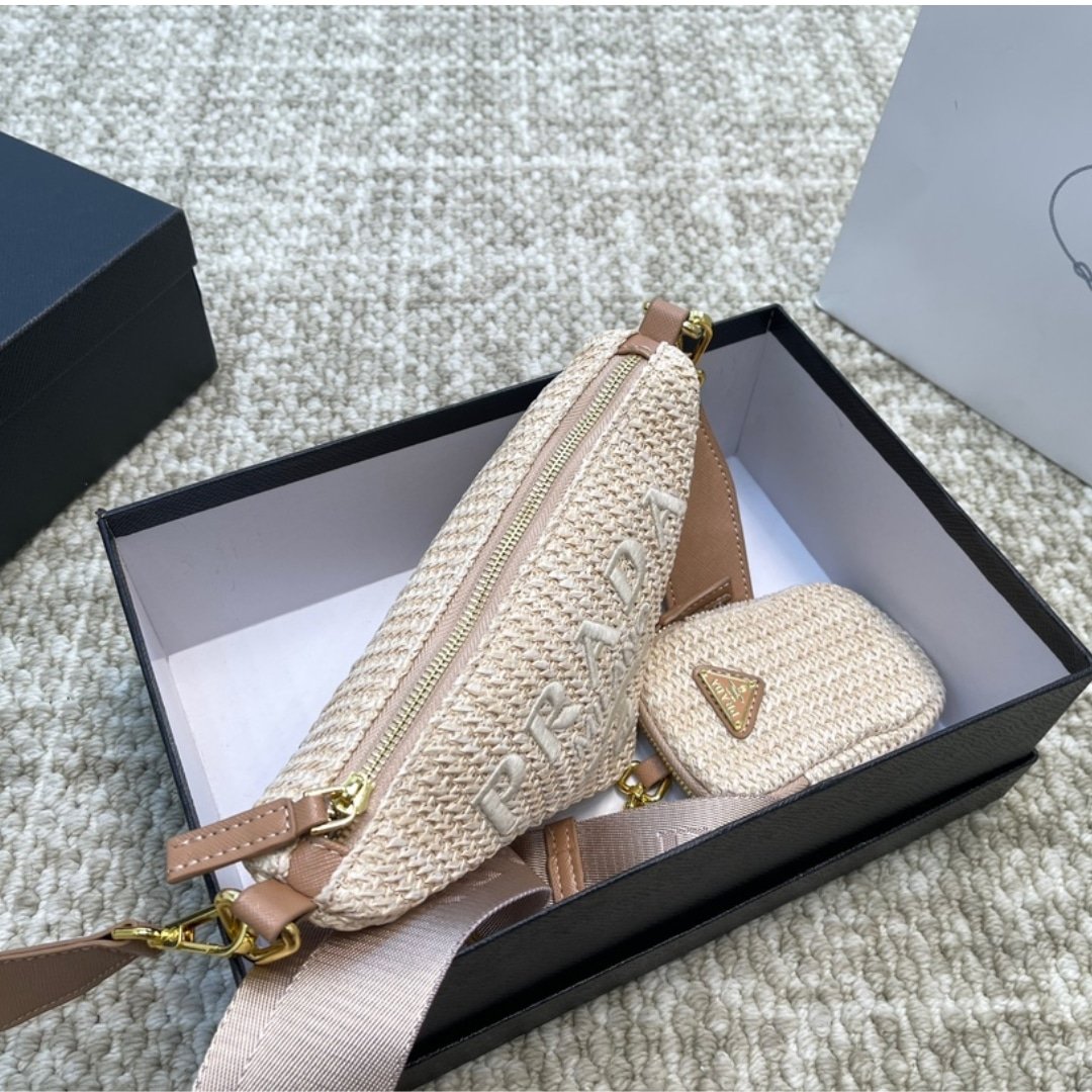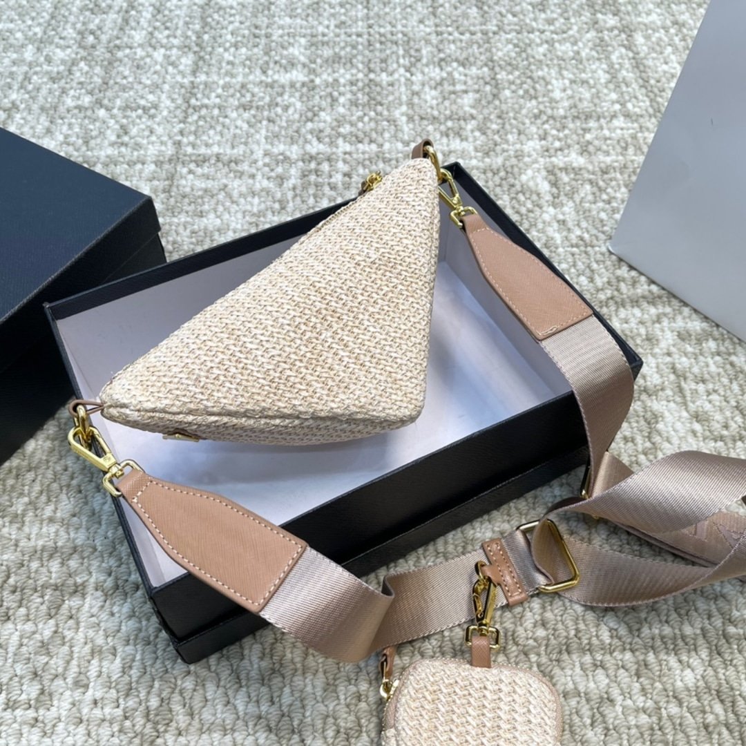 Prada Triangle Crochet Shoulder Bag Natural 25Cm