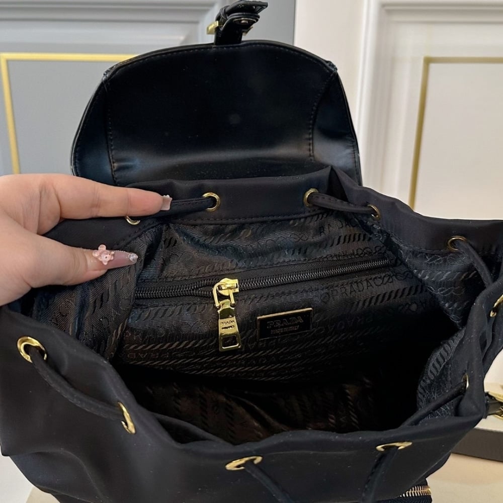 Prada Women Re Nylon And Brushed Backpack Black 27Cm