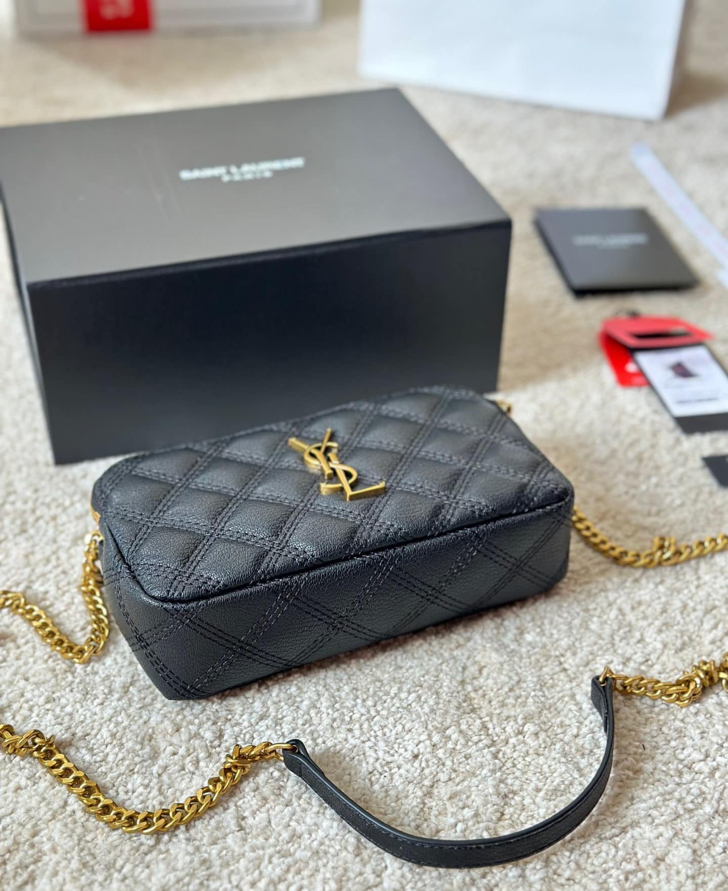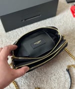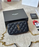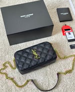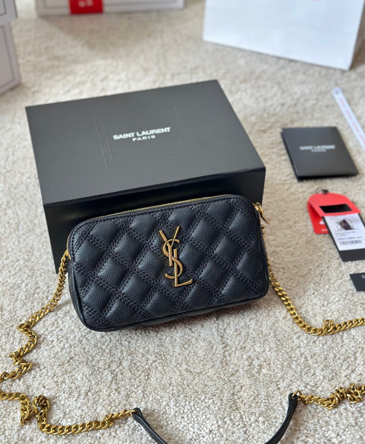 Saint Laurent Becky Quilted Double Zip Pouch Bag Black 20Cm
