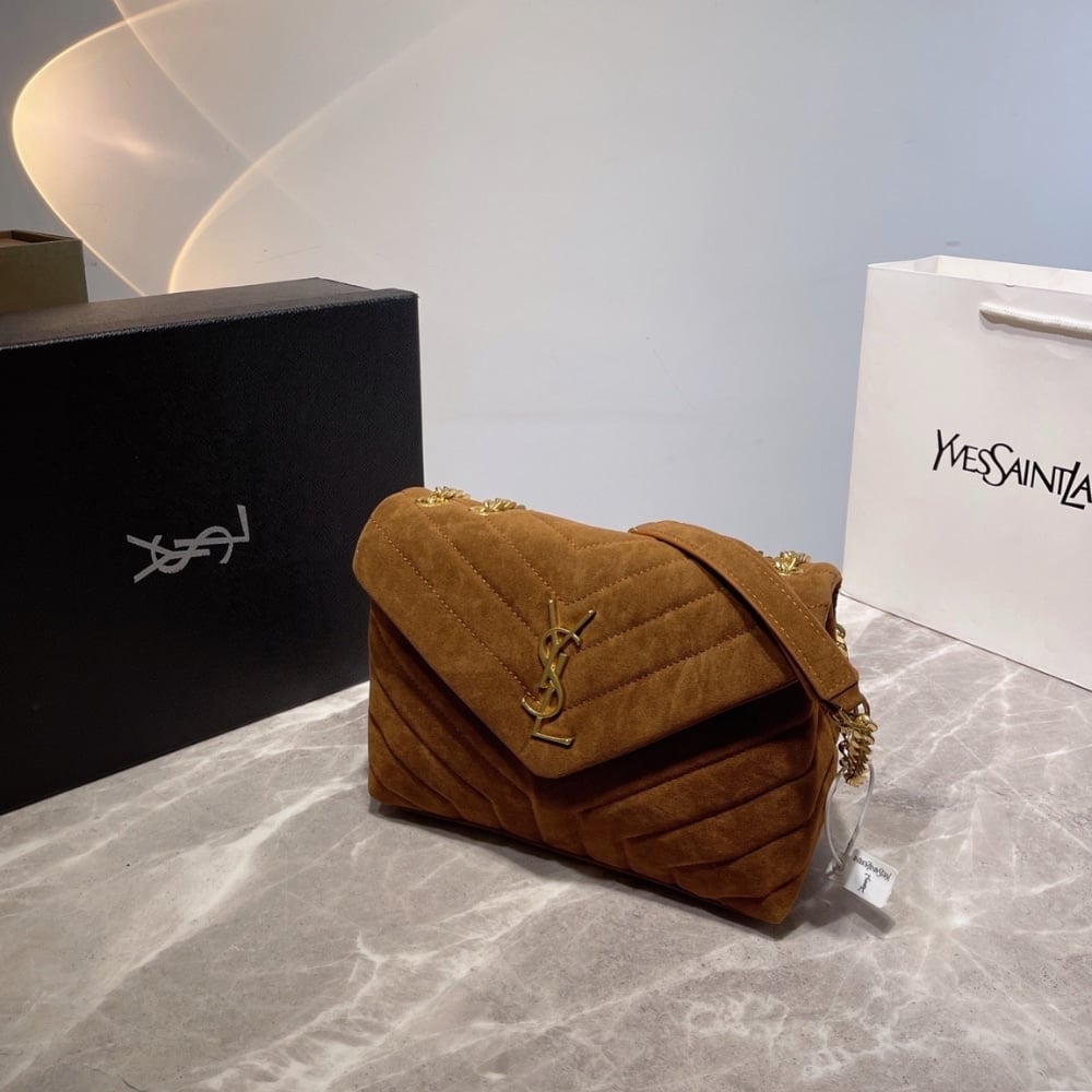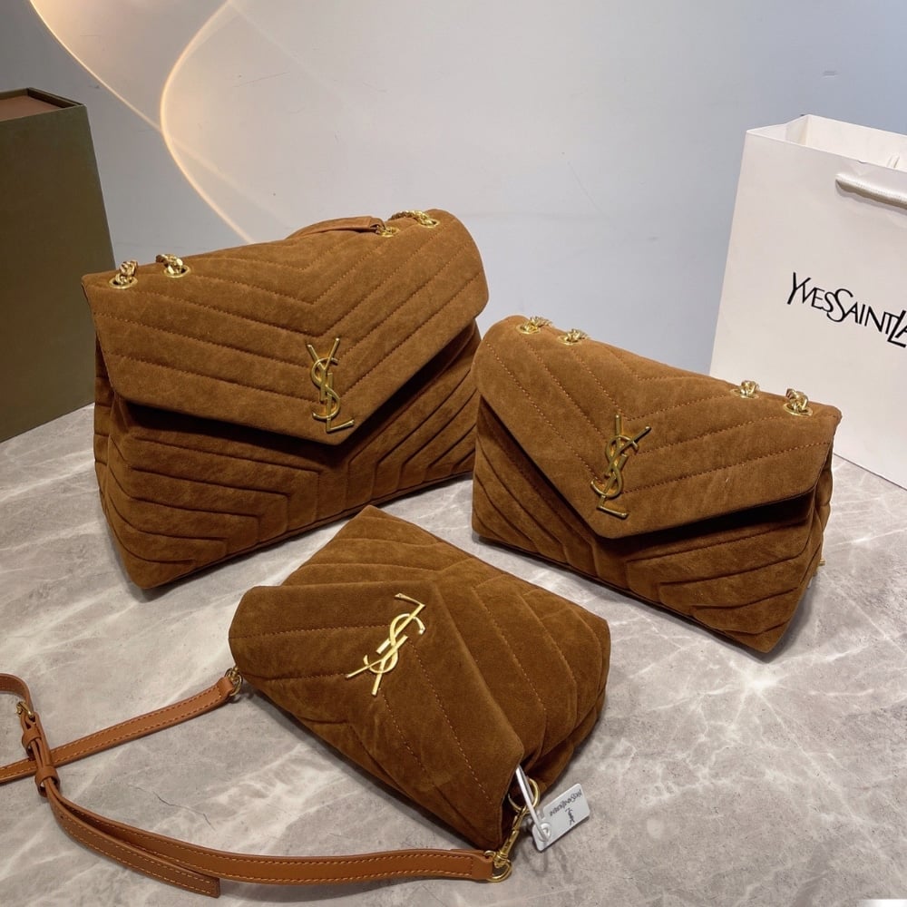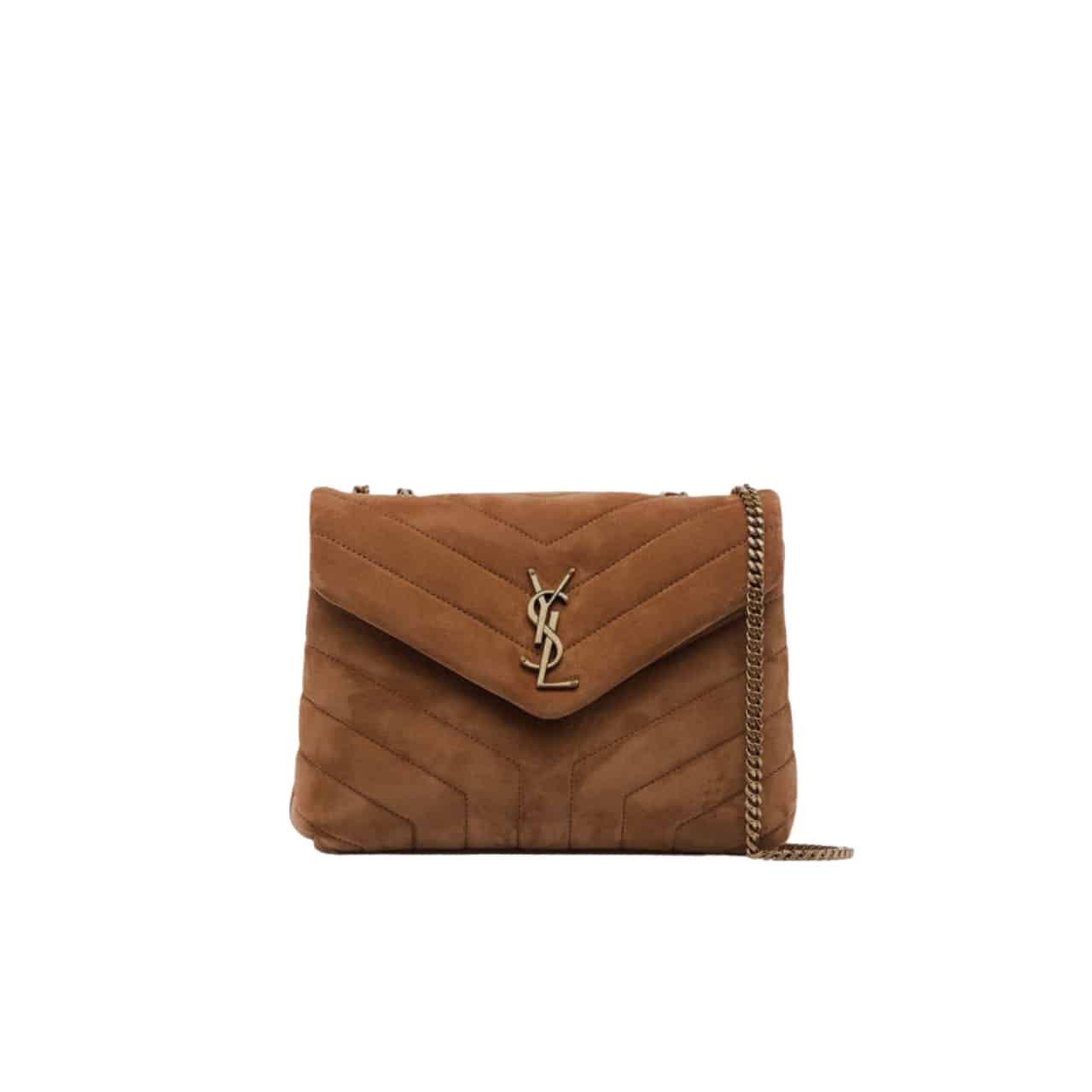 Saint Laurent Cinnamon Loulou Medium Chain Bag In Suede Brown 23Cm