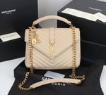 Saint Laurent Collège Medium Chain Bag In Quilted Leather Beige 24Cm