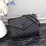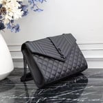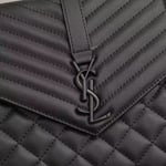 Saint Laurent Envelope Large Bag In Mix Matelasse Grain De Poudre Embossed Leather Black 31Cm