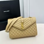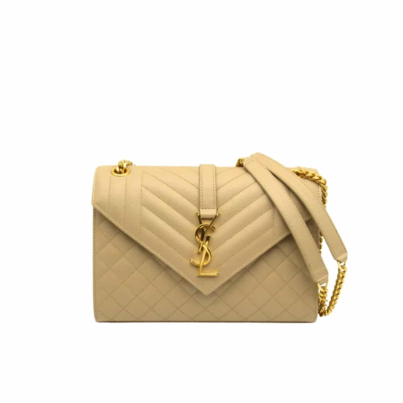 Saint Laurent Envelope Medium Chain Bag In Mix Matelasse Grain De Poudre Embossed Beige 24Cm