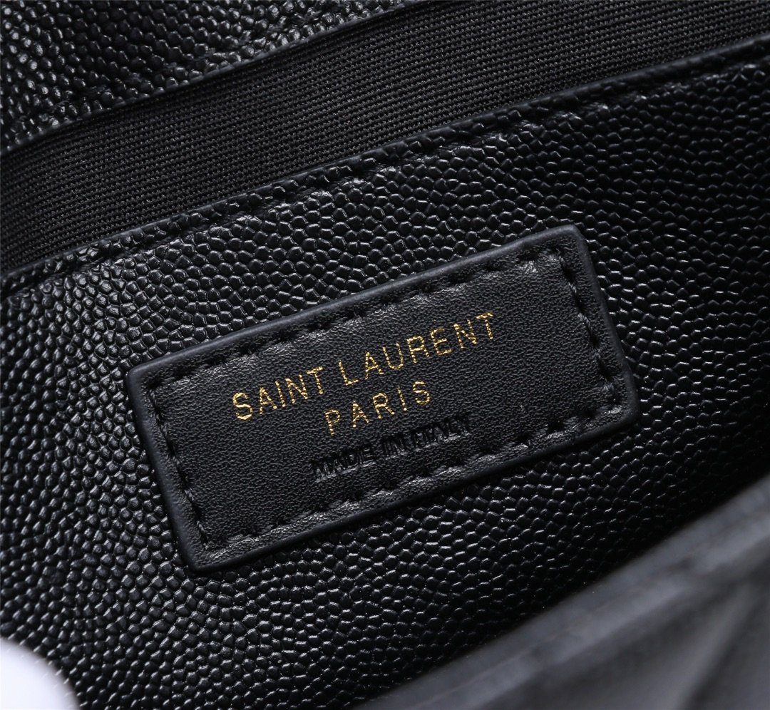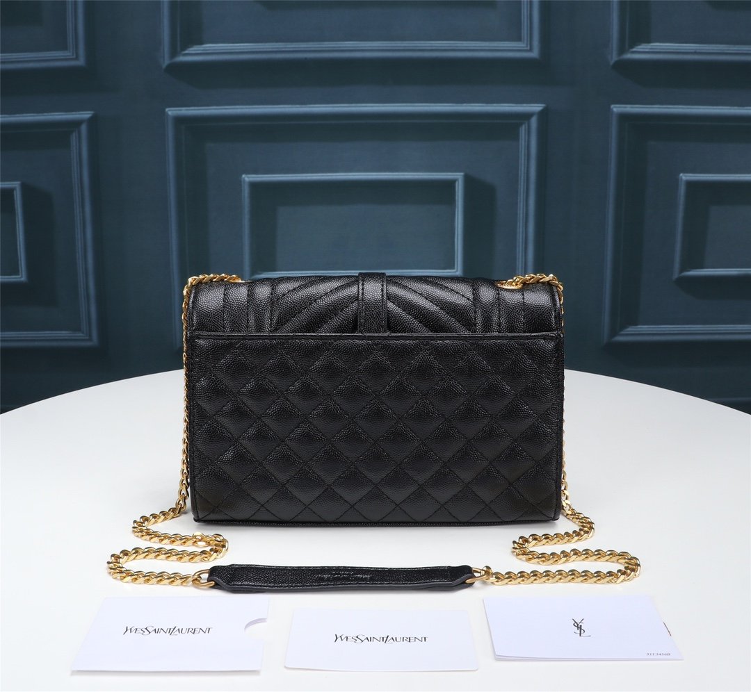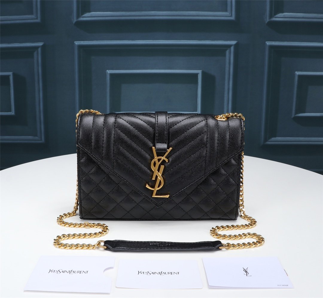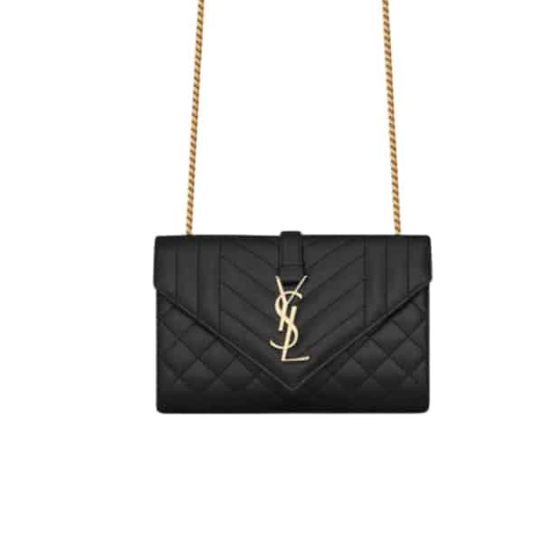 Saint Laurent Envelope Small Bag In Mix Matelasse Grain De Poudre Embossed Black Gold 21Cm