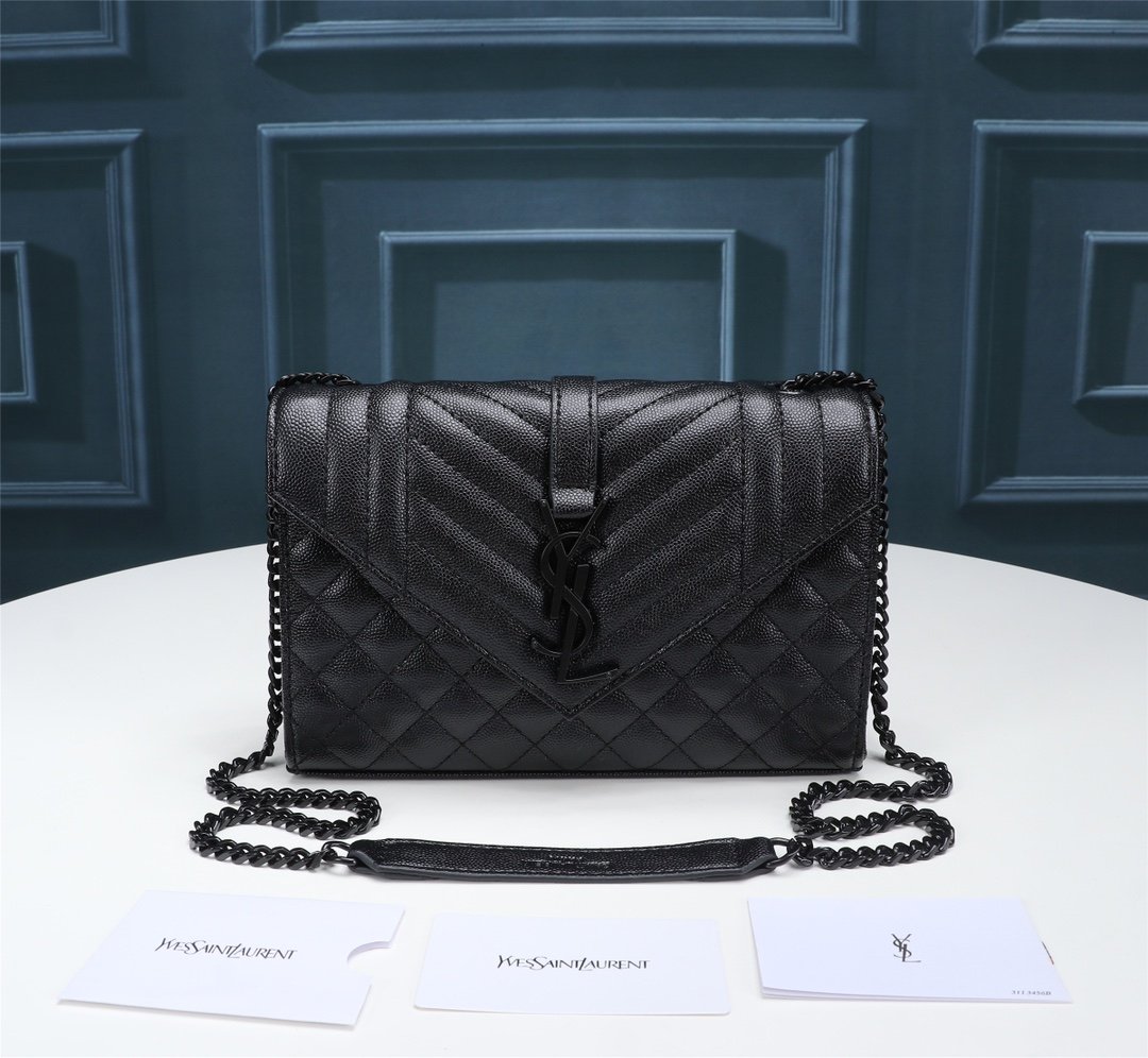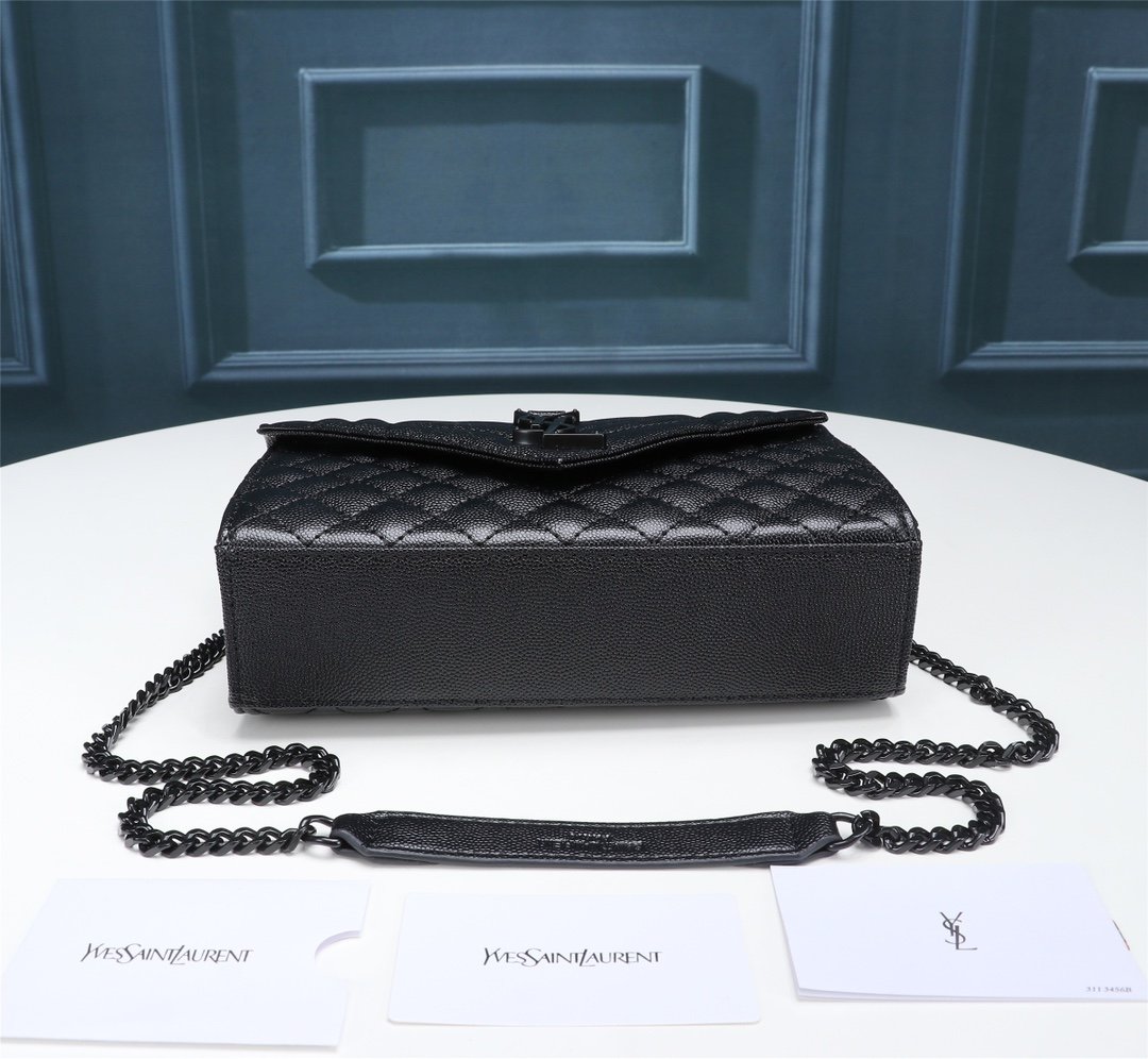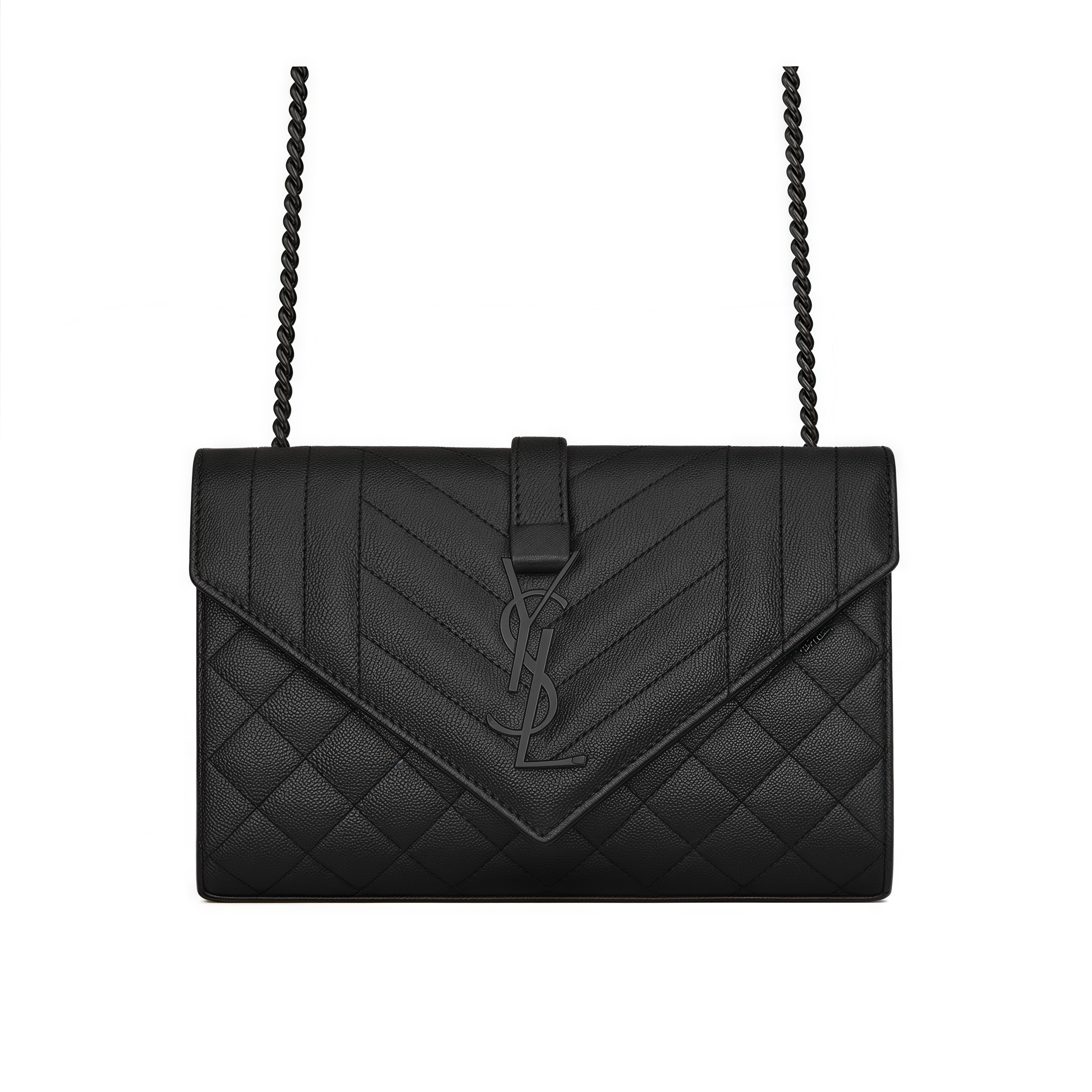 Saint Laurent Envelope Small Bag In Mix Matelasse Grain De Poudre Embossed Black Noir