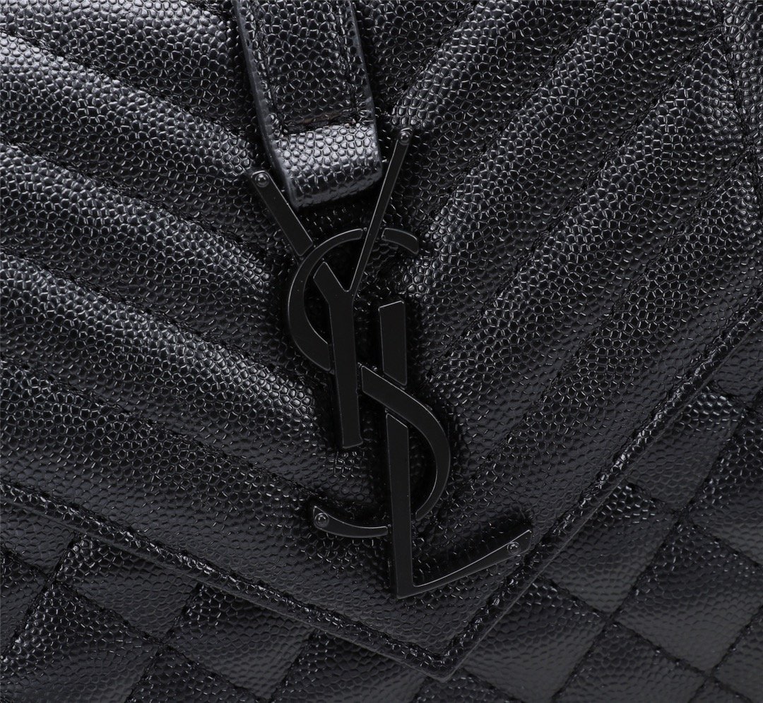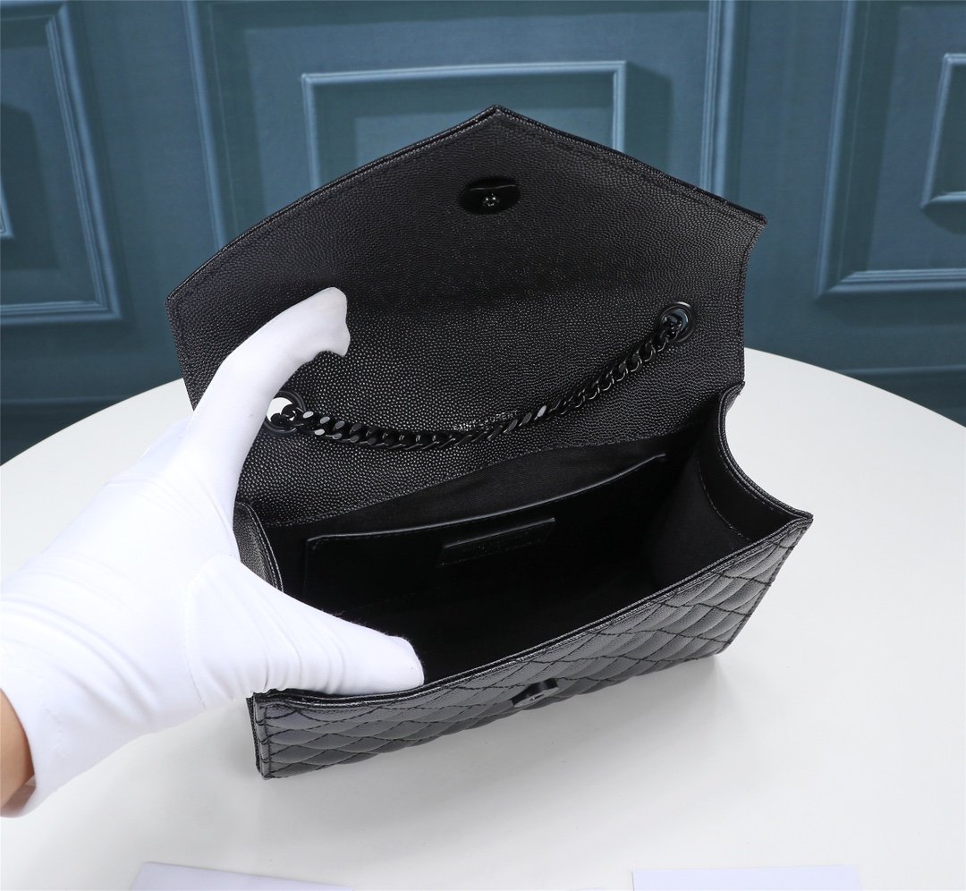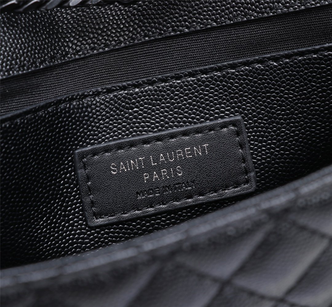 Saint Laurent Envelope Small Bag In Mix Matelasse Grain De Poudre Embossed Black Noir