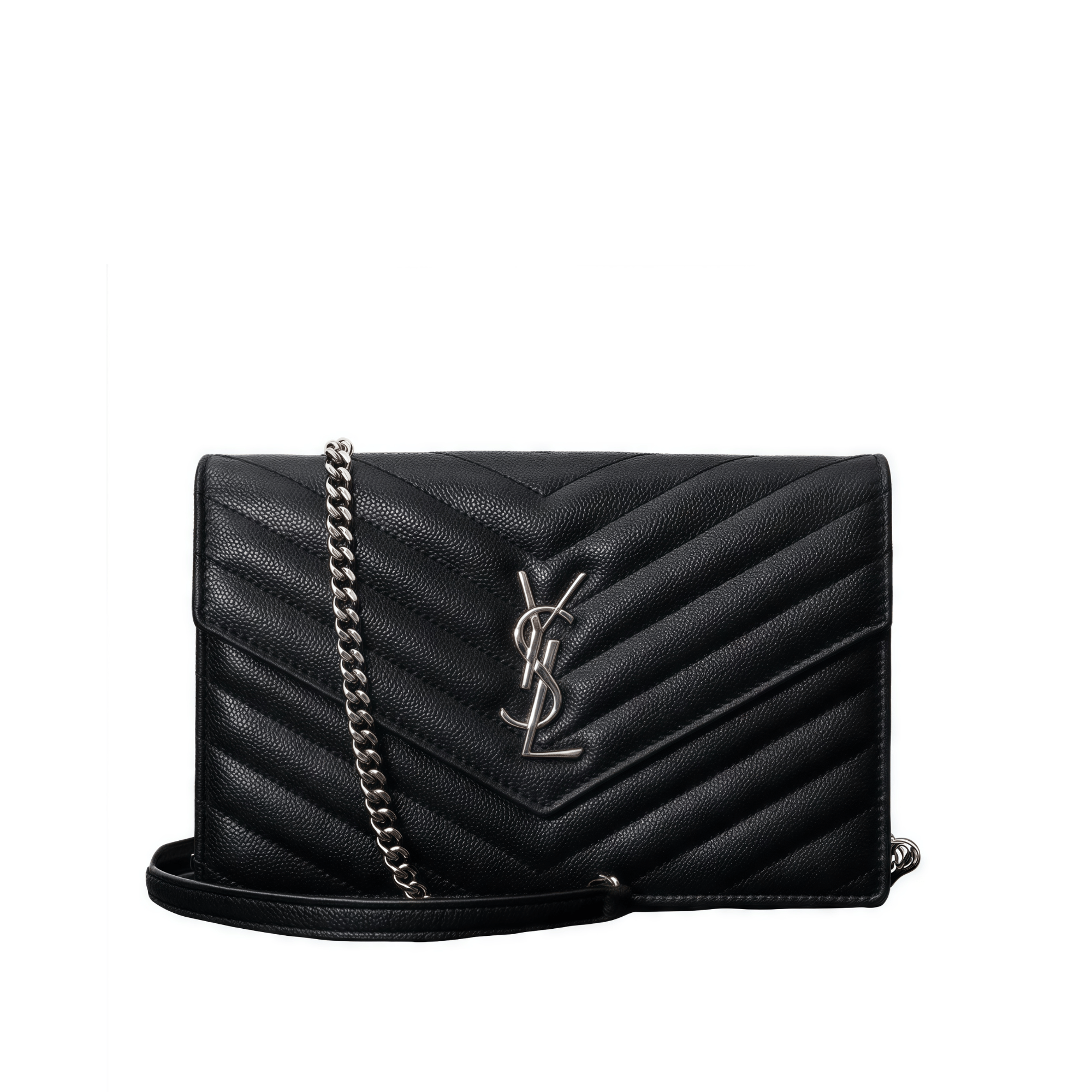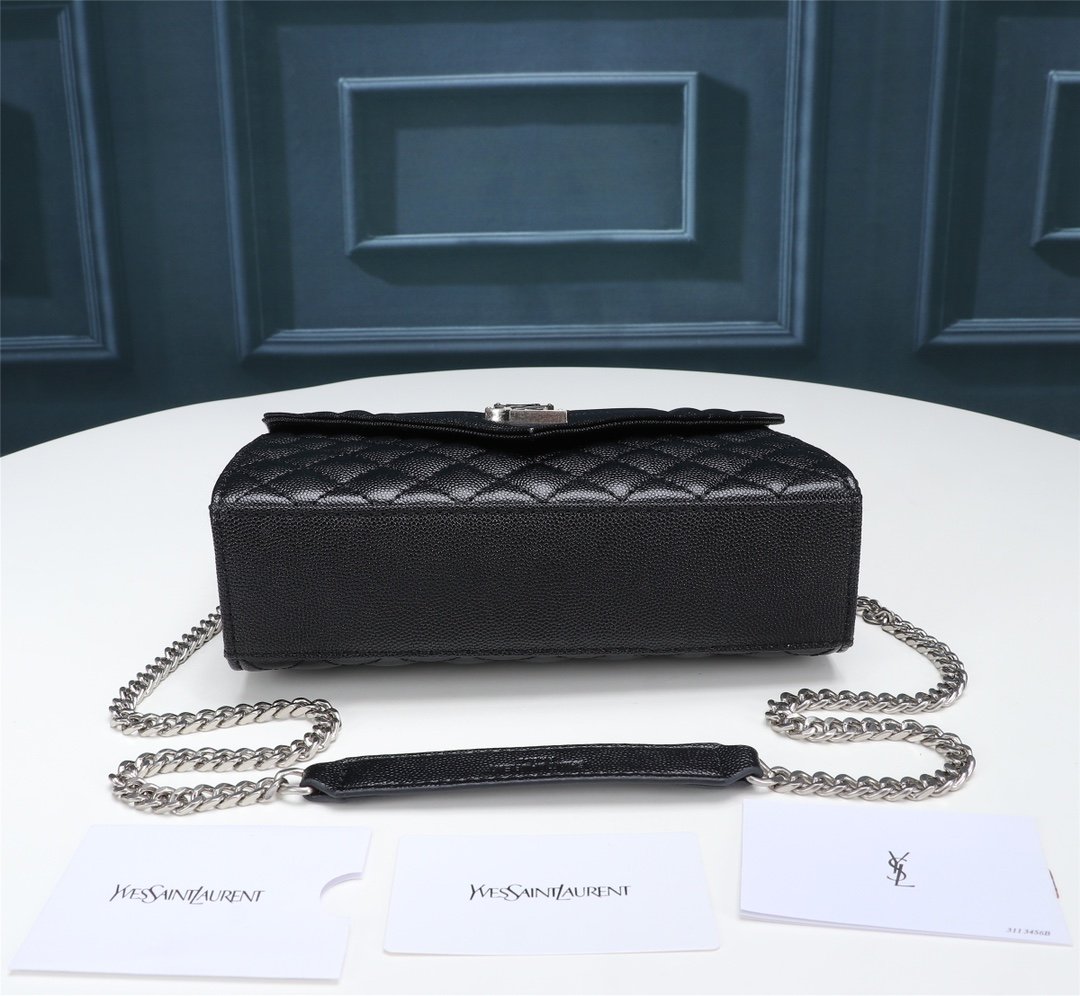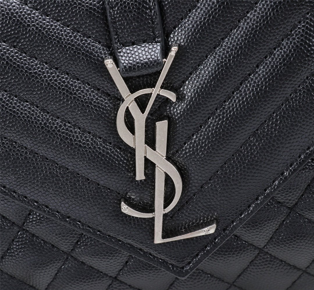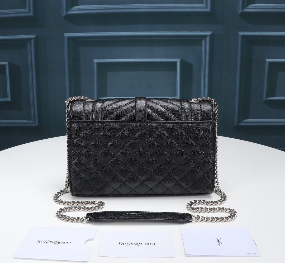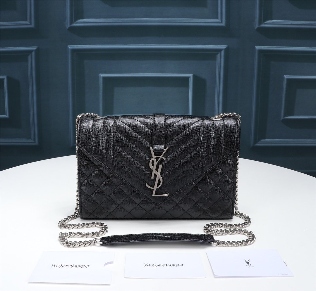 Saint Laurent Envelope Small Bag In Mix Matelasse Grain De Poudre Embossed Black Silver