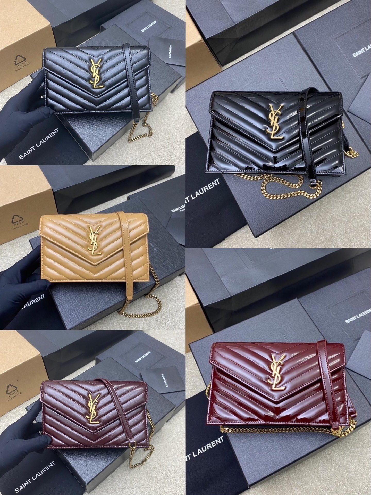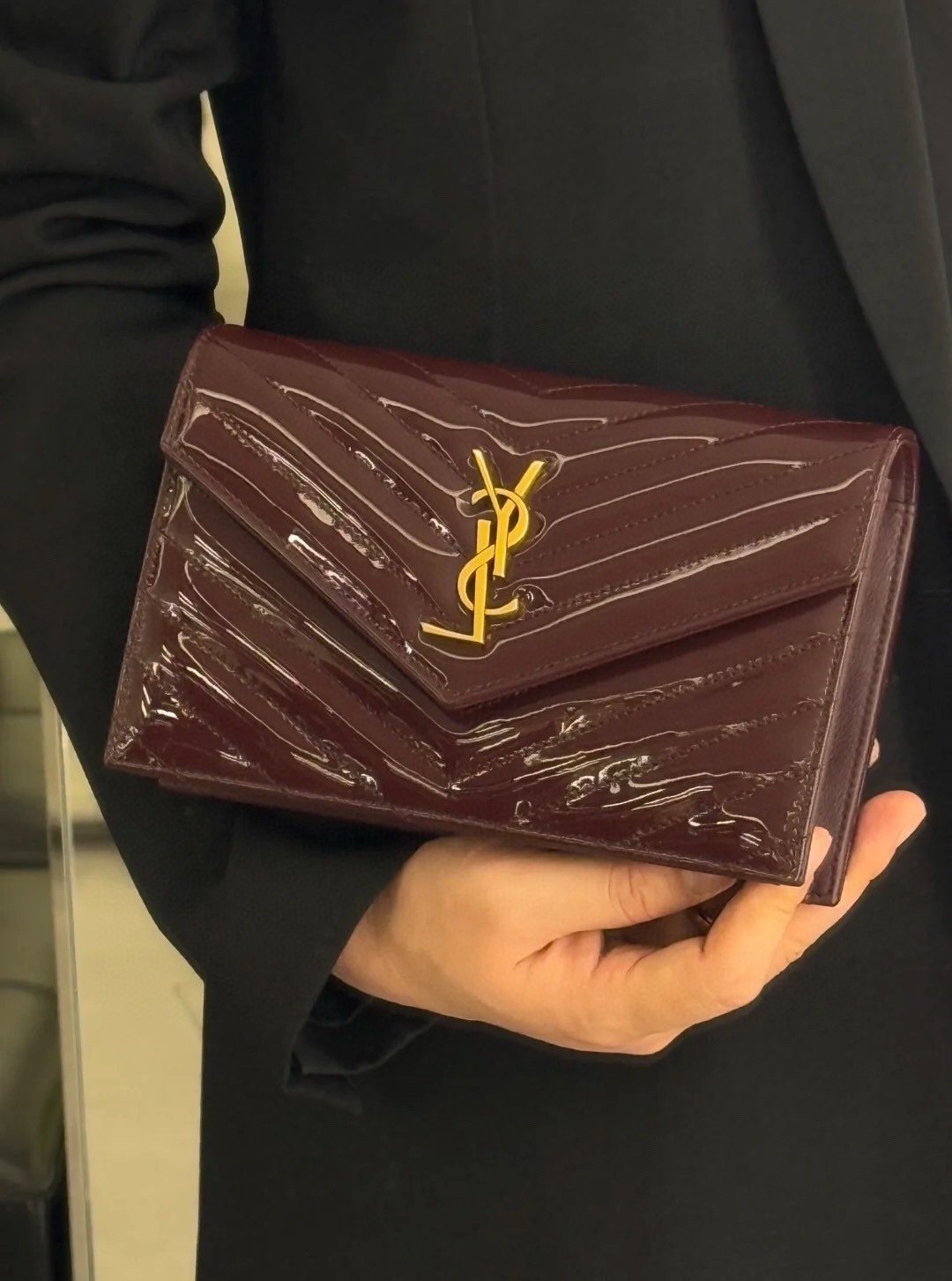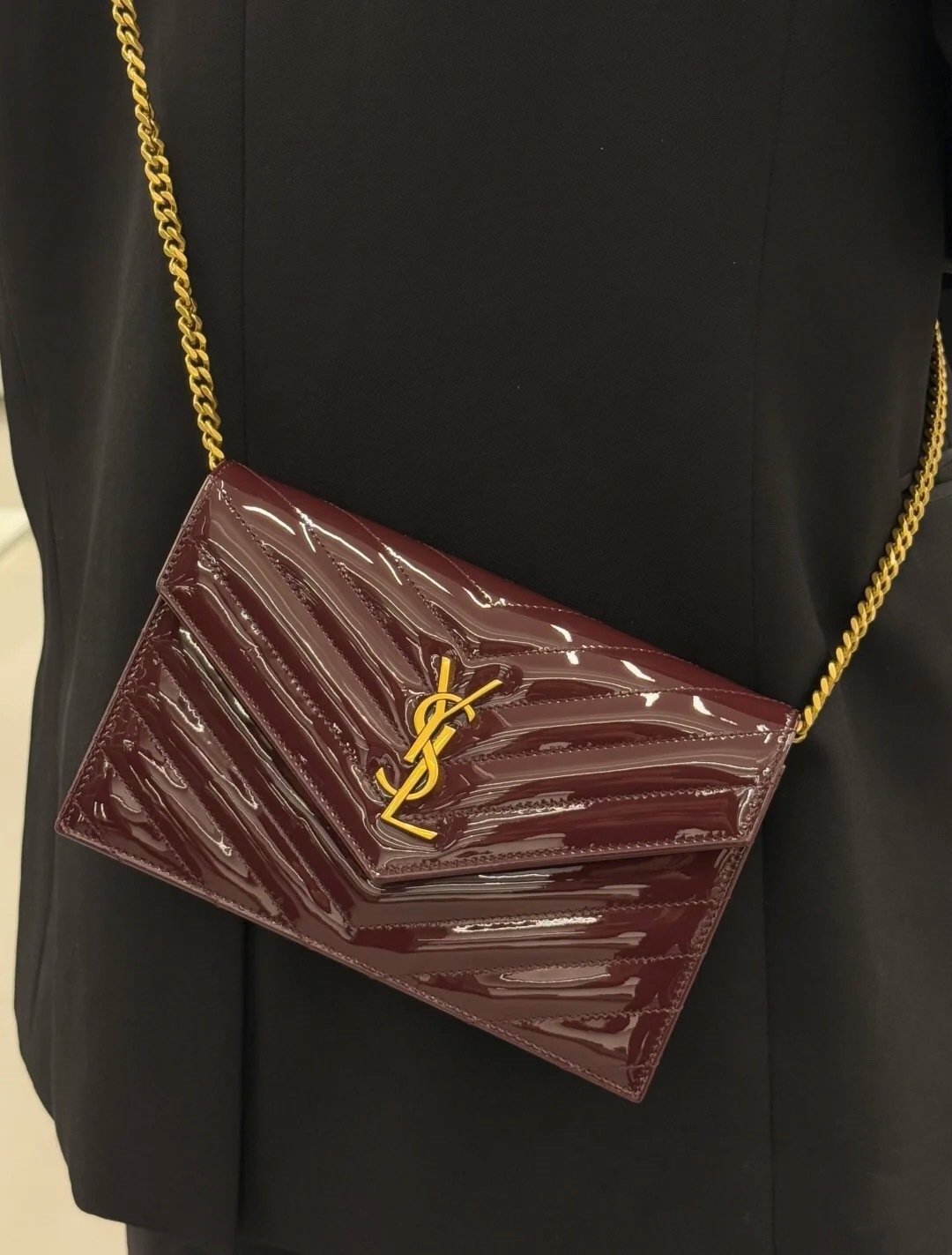 Saint Laurent Envelope Wallet on Chain in Quilted Patent Leather 19cm