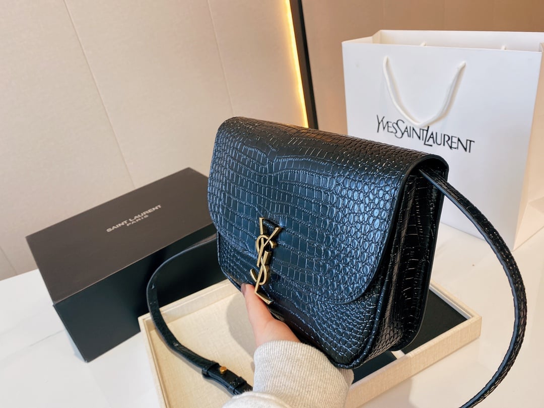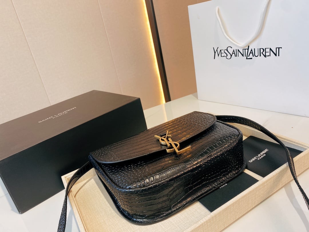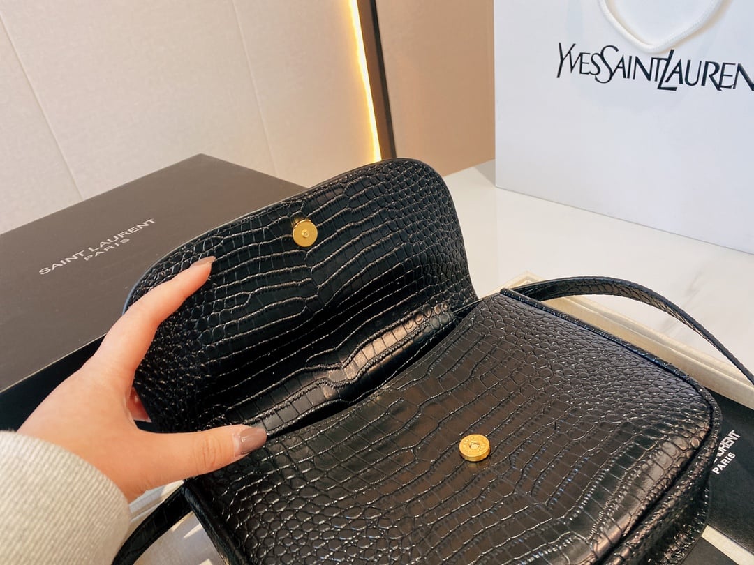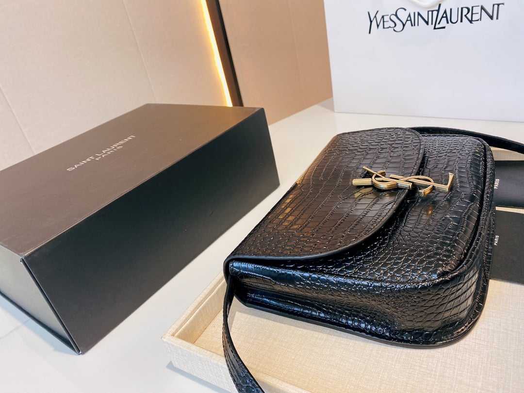 Saint Laurent Kaia Medidum Embossed Leather Black Gold Bag 23Cm