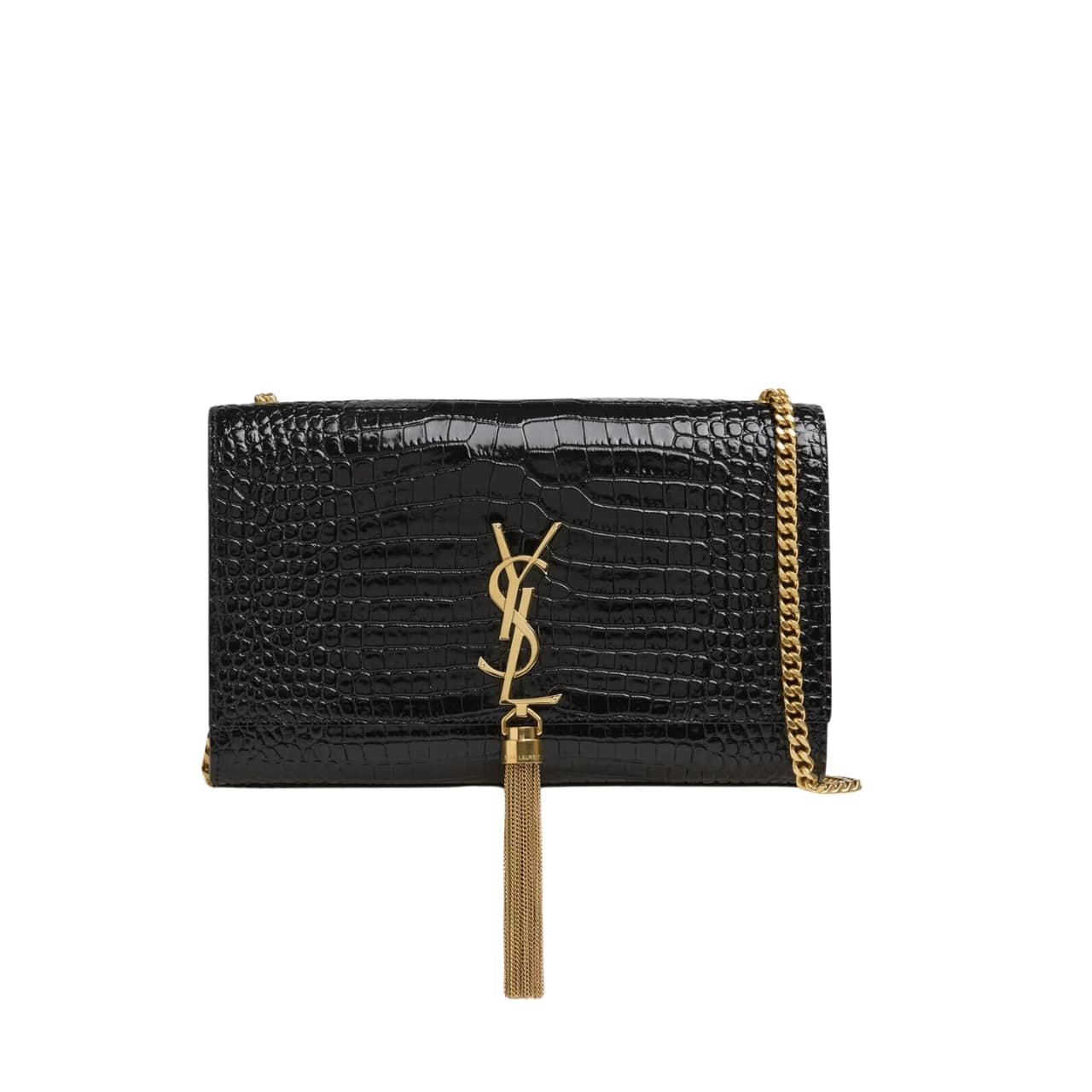 Saint Laurent Kate Medium Chain Bag With Tassel In Shiny Leather Black