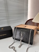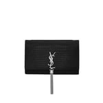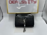 Saint Laurent Kate Tassel Medium Crocodile Embossed Leather Black 22Cm