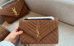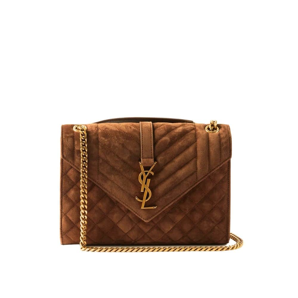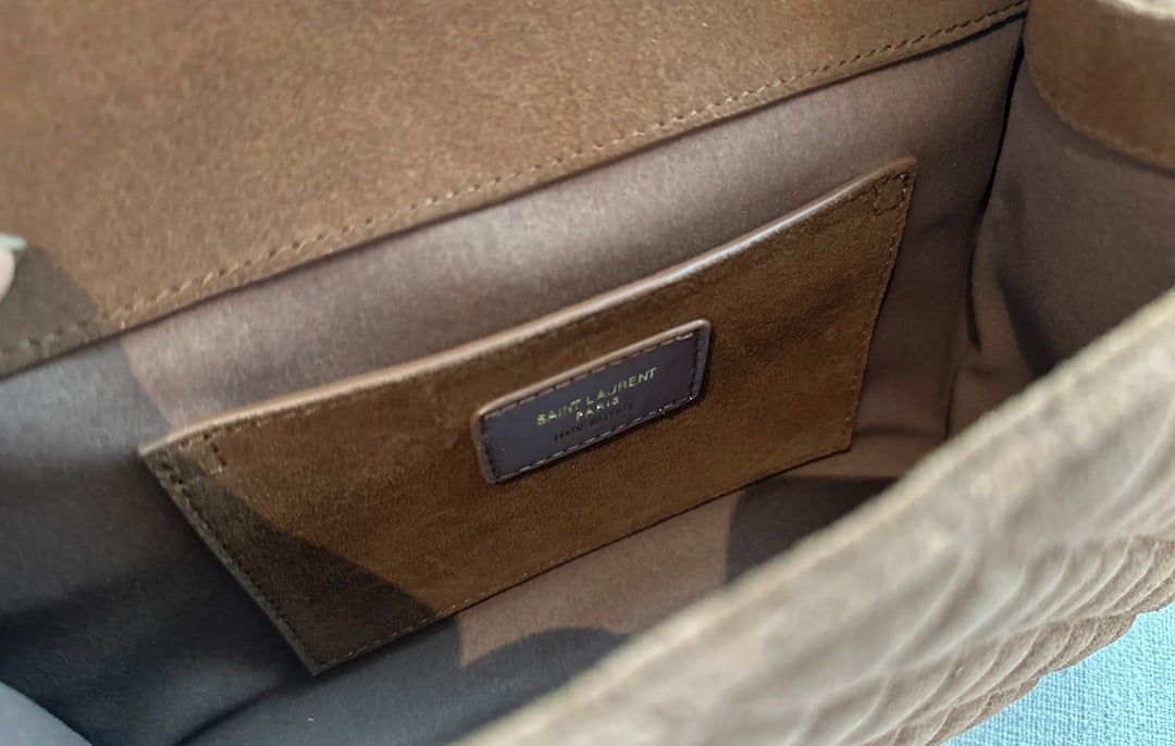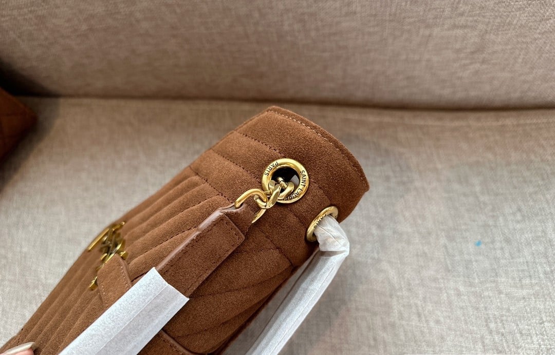 Saint Laurent Le 5 A 7 Bea In Suede Golden Leaf 55Cm Suede Shoulder Bag Brown 24Cm