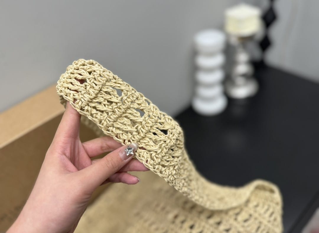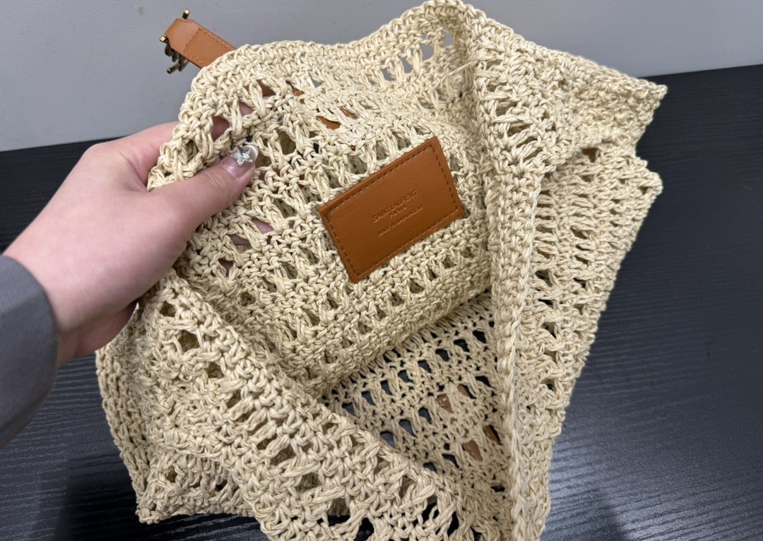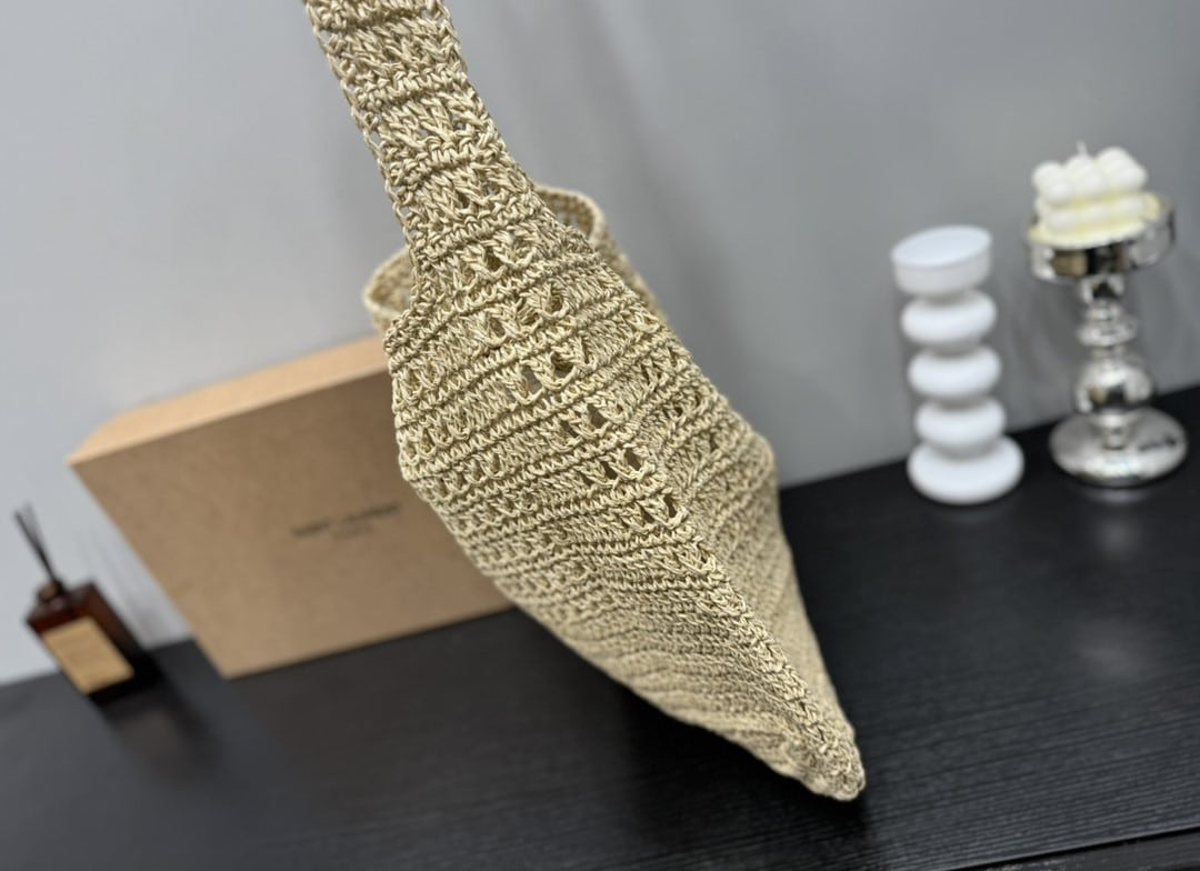 Saint Laurent Le 5 A 7 In Raffia Crochet And Smooth Leather Beige 32Cm