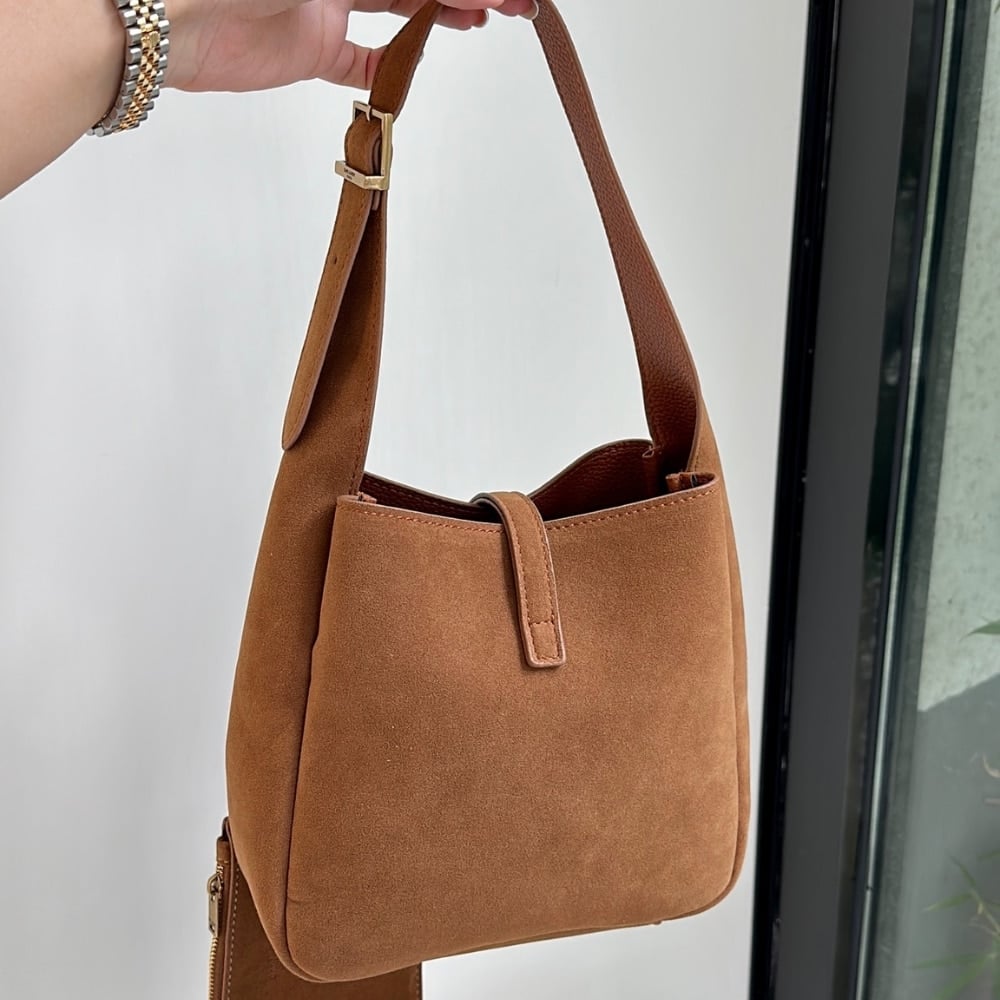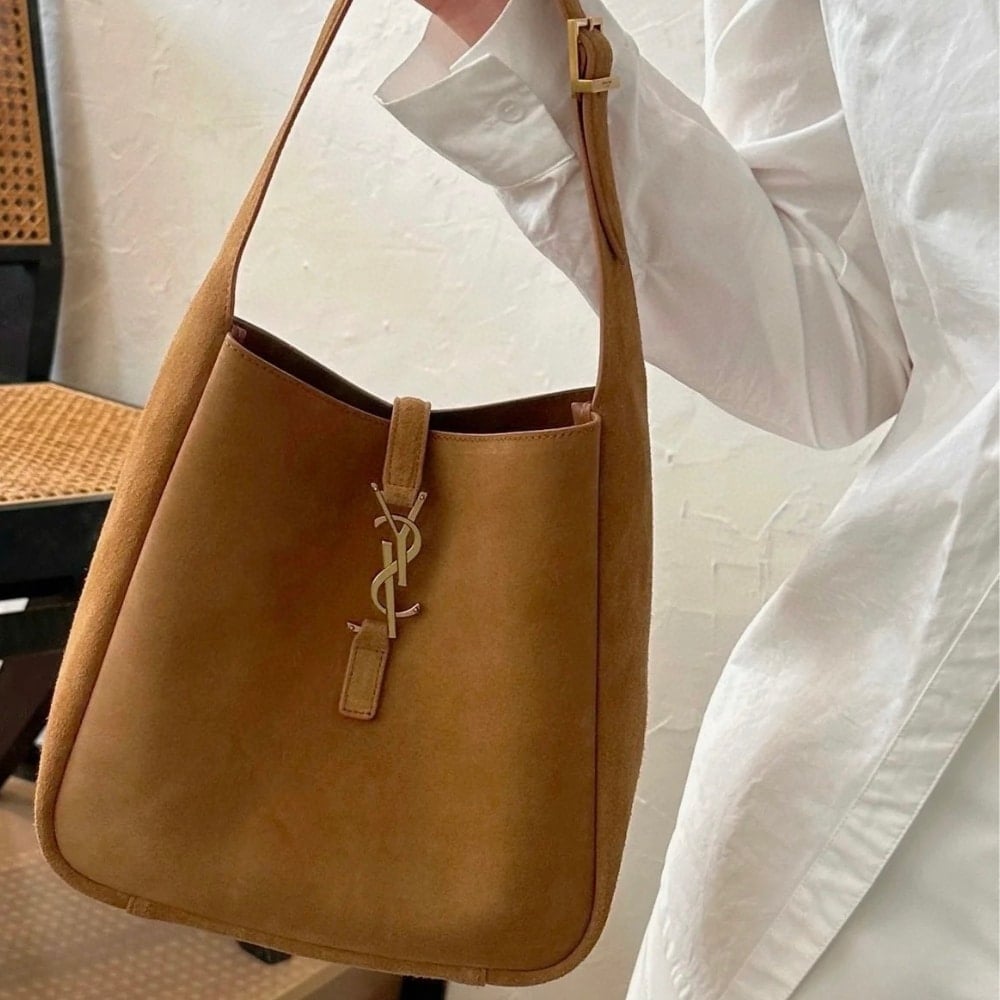 Saint Laurent Le 5 A 7 Supple In Suede Golden Brown 24Cm
