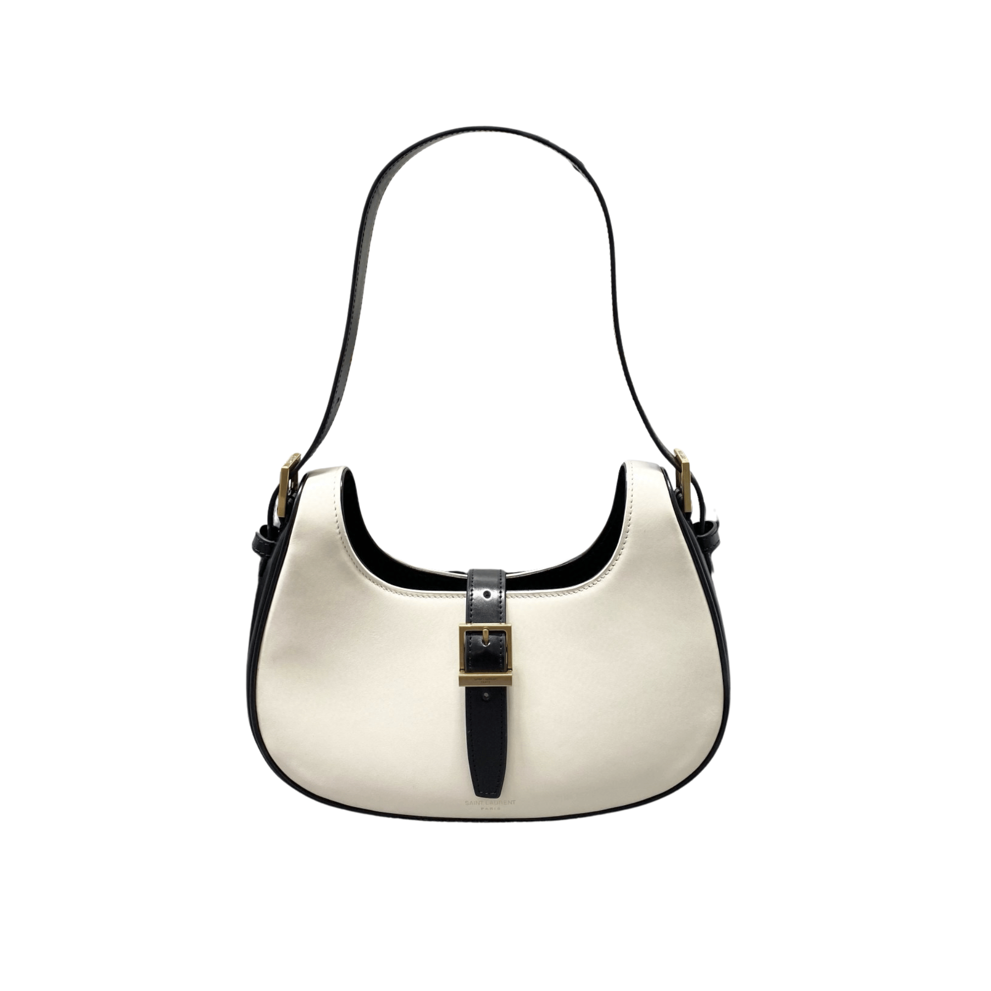 Saint Laurent Le Fermoire Leather Shoulder Bag Black White 25Cm