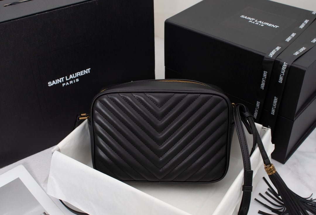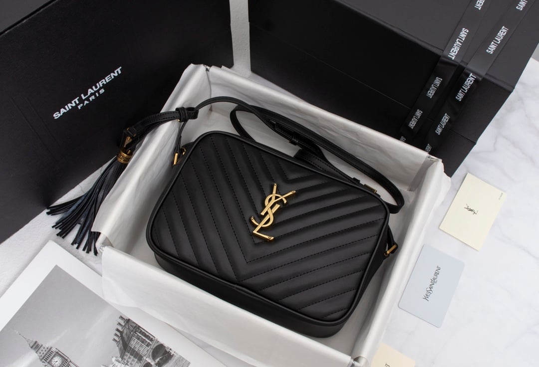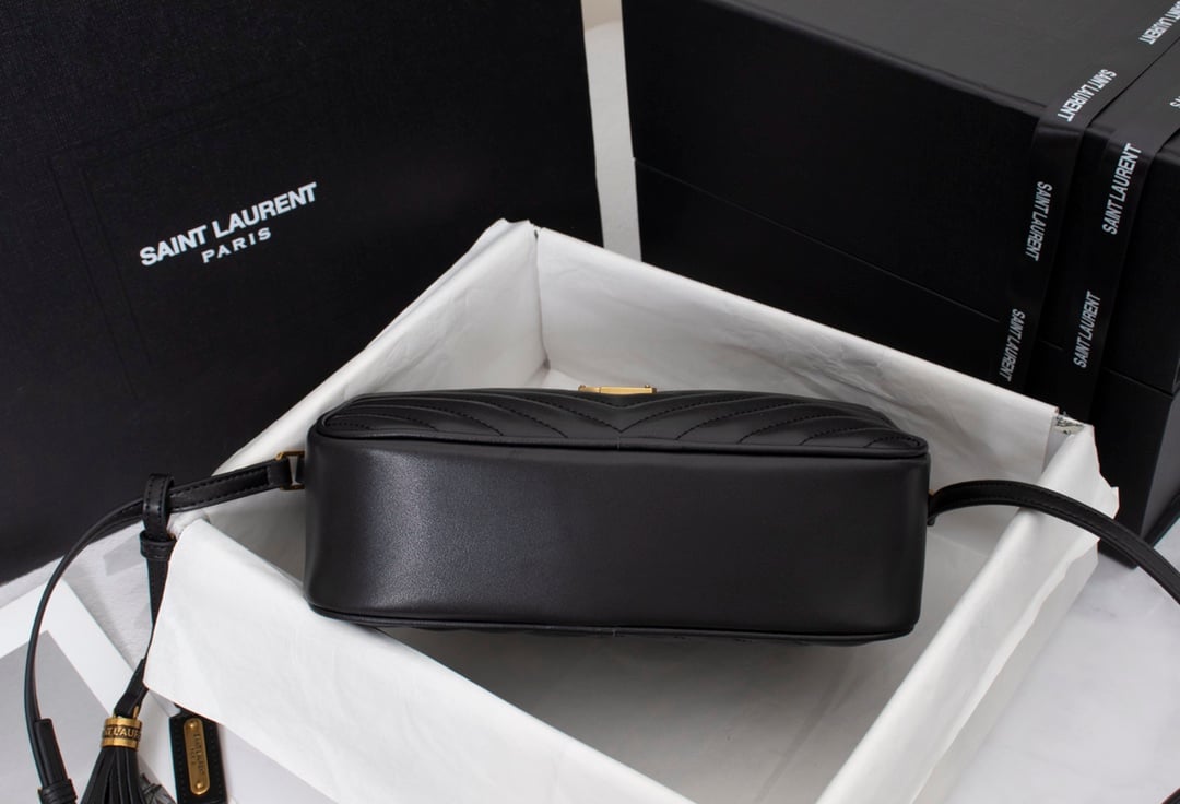 Saint Laurent Lou Camera Bag In Quilted Black Gold Leather 23Cm