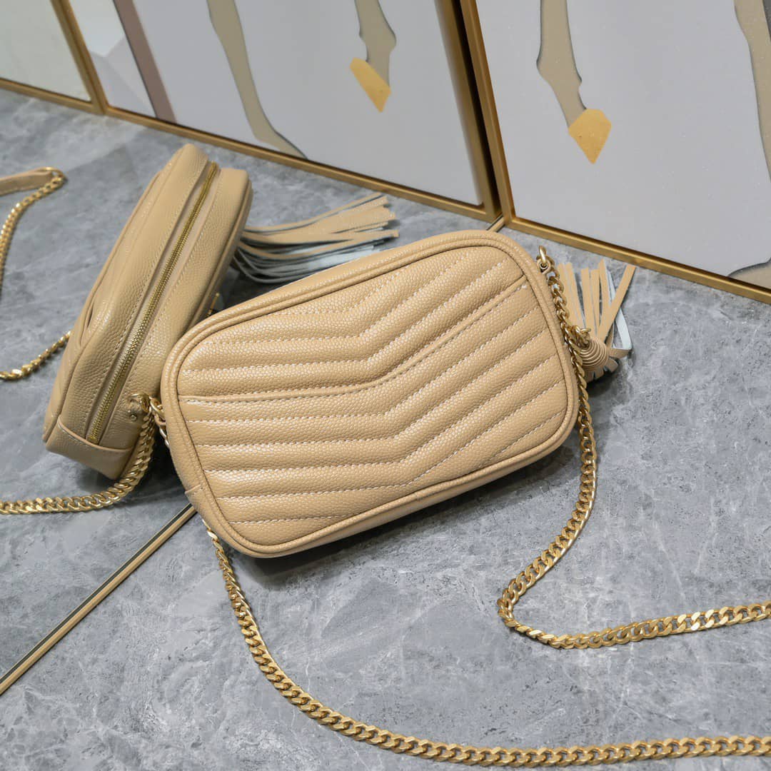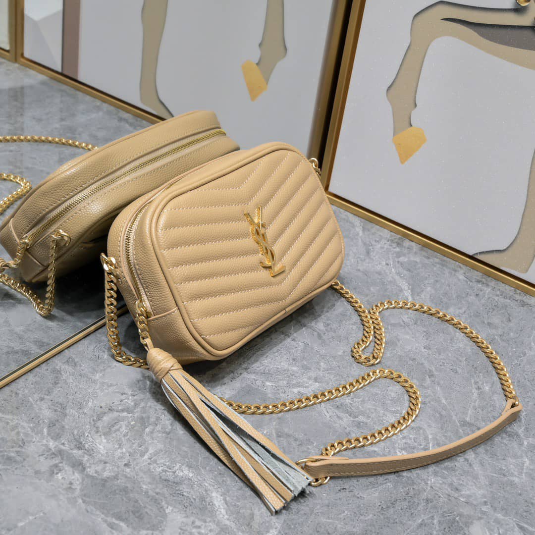 Saint Laurent Lou Camera Bag In Quilted Leather Beige 18Cm