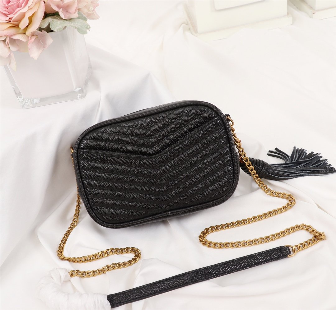 Saint Laurent Lou Camera Bag In Quilted Leather Gold Hardware Black 18Cm