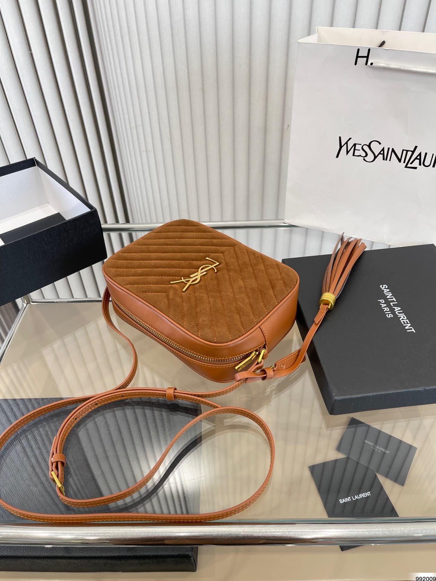 Saint Laurent Lou Camera Bag In Quilted Suede And Smooth Leather