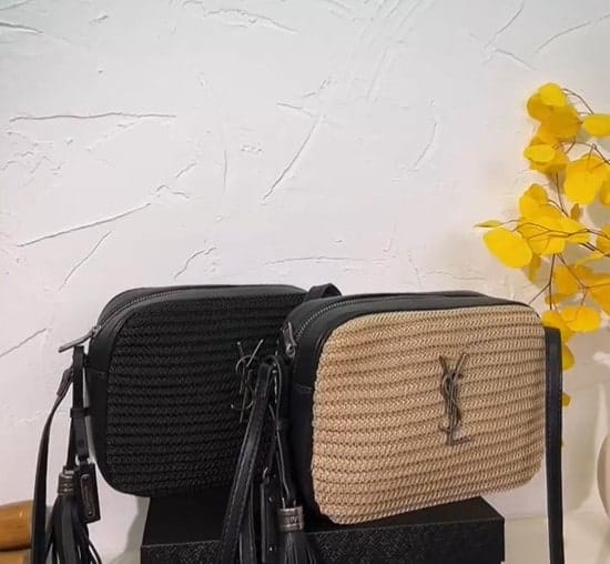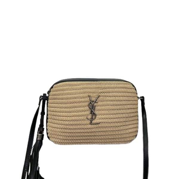 Saint Laurent Lou Camera Bag In Raffia And Smooth Leather Naturel 24Cm