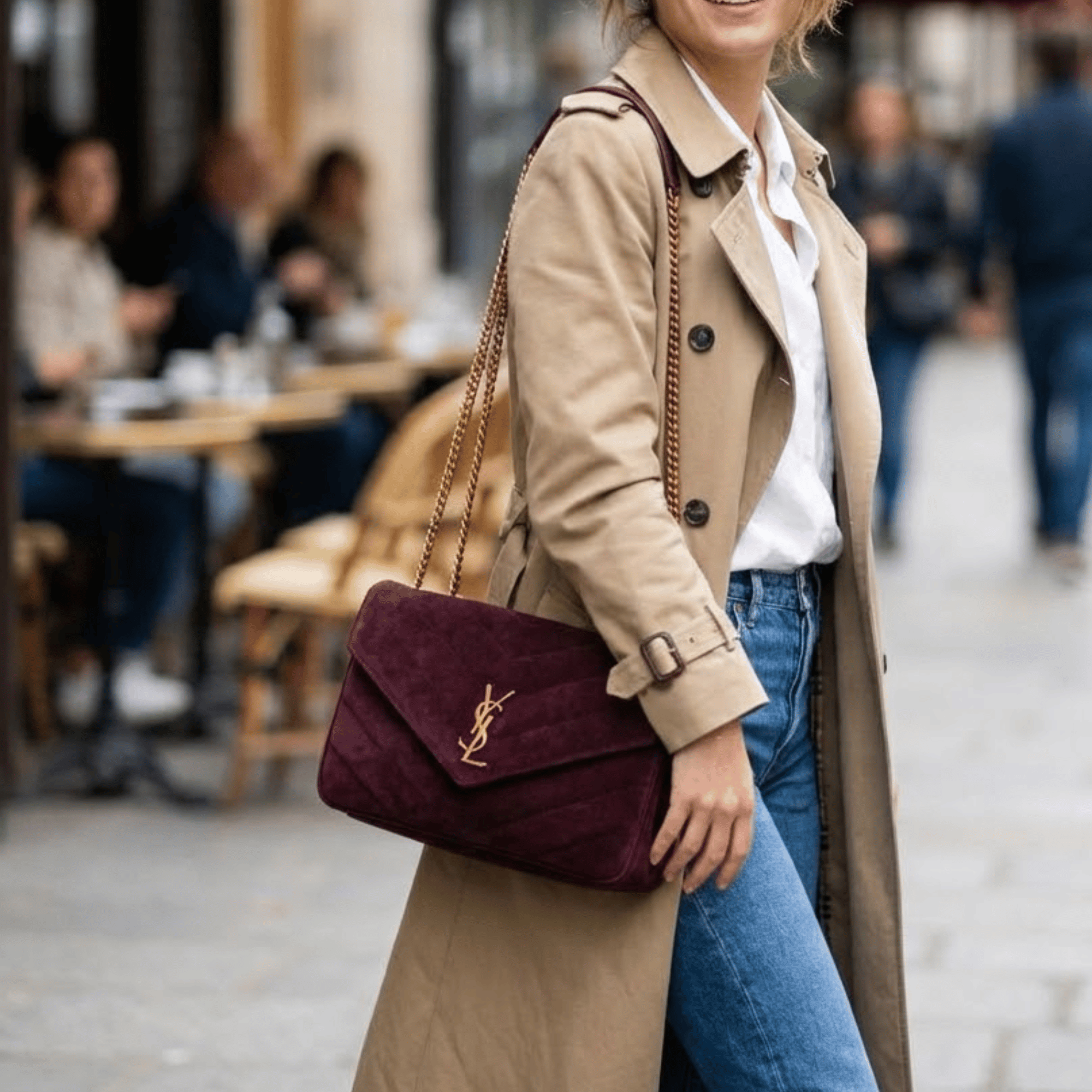 Saint Laurent Loulou Deep Wine Chevron Bag 29cm/11.4in
