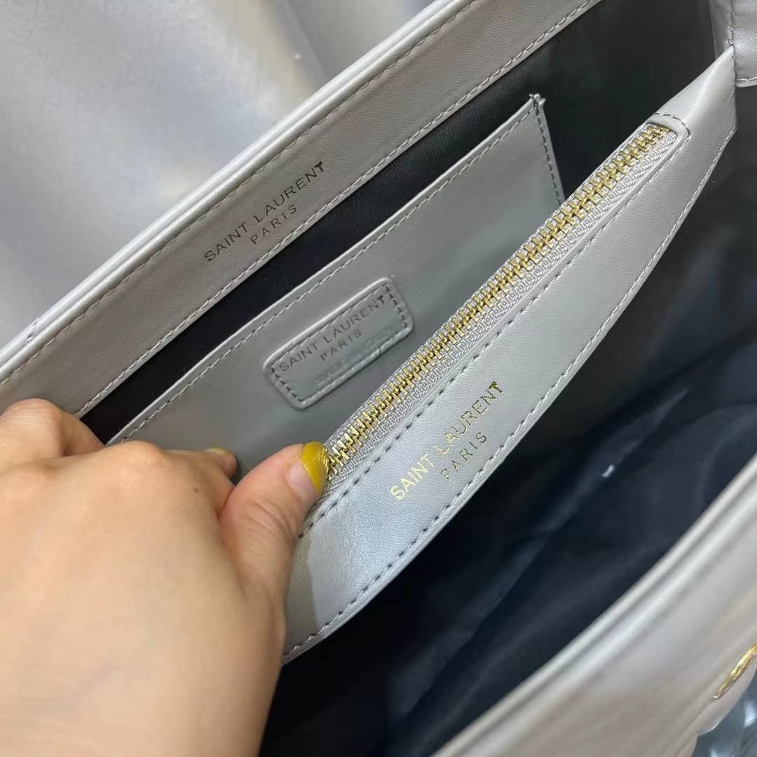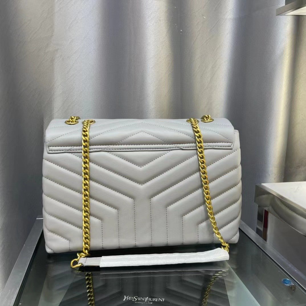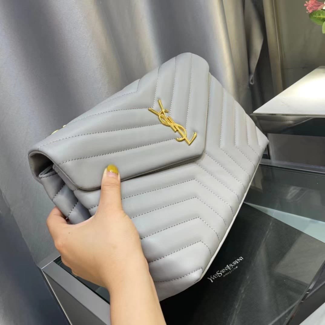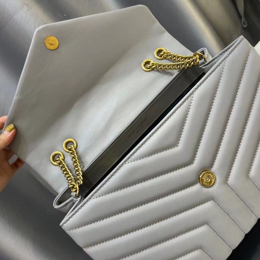 Saint Laurent Loulou Medium Chain Bag In Matelasse Y Leather Gray