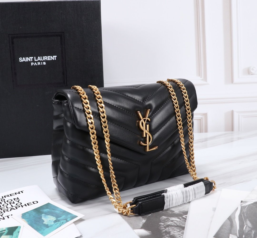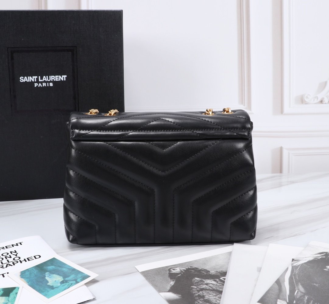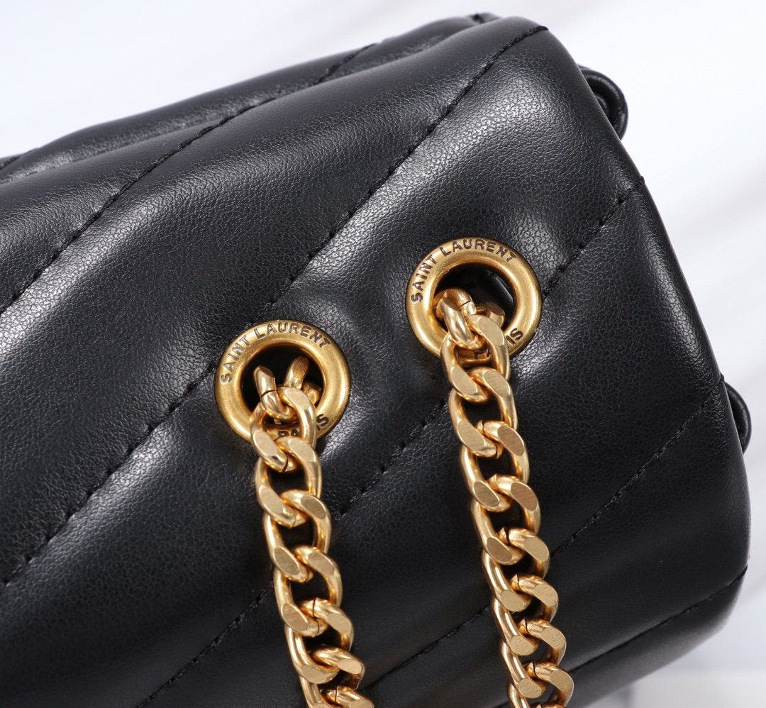 Saint Laurent Loulou Small Chain Bag In Matelass㉠Y Black Gold 23Cm