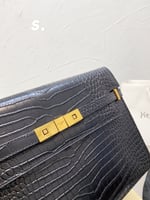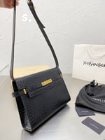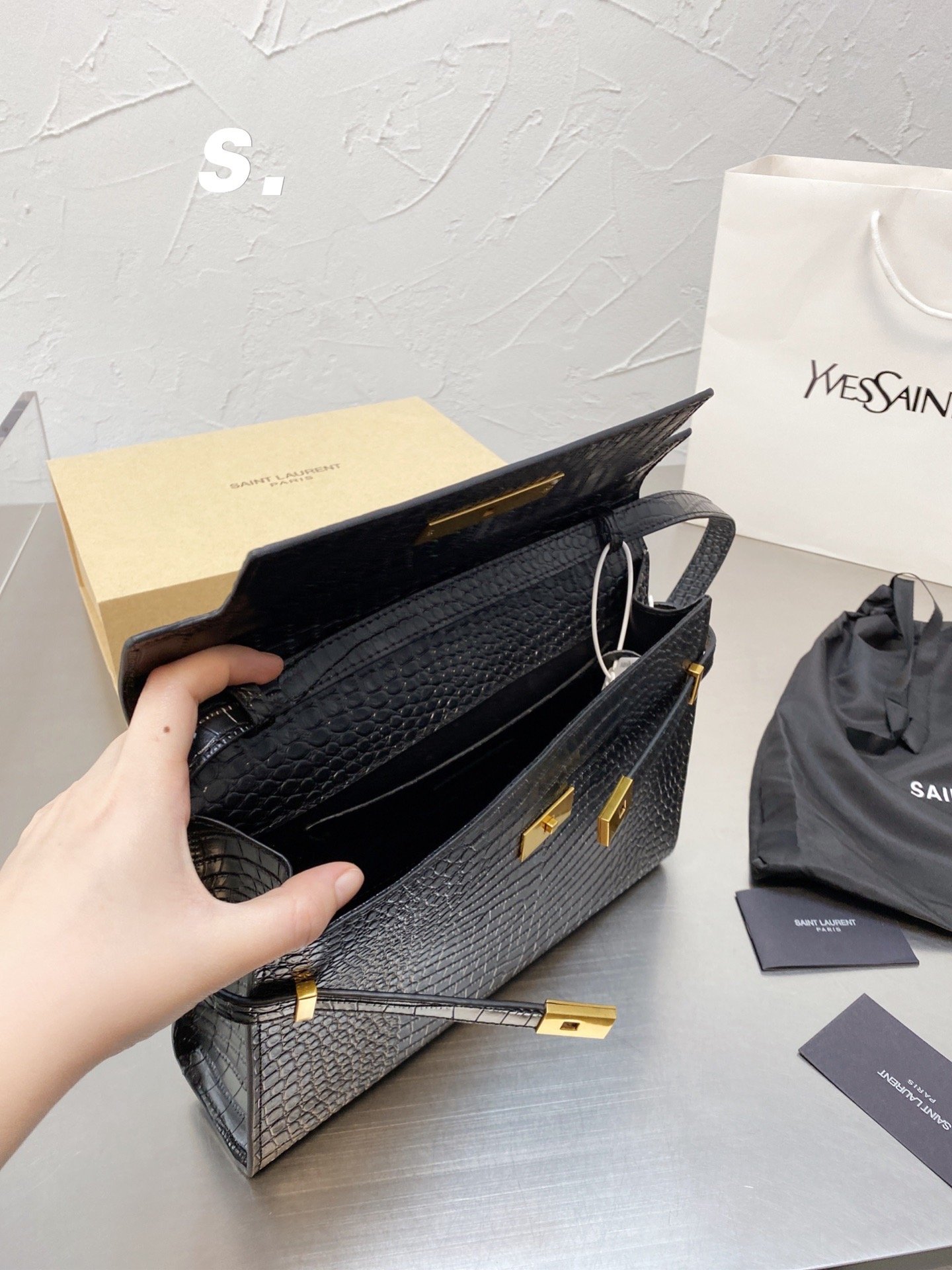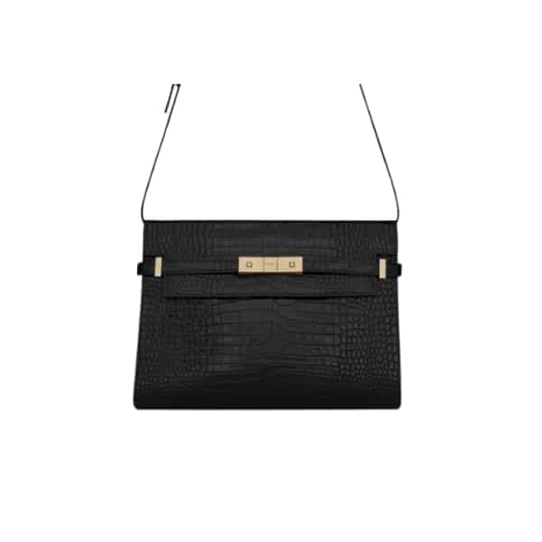 Saint Laurent Manhattan Shoulder Bag In Crocodile Embossed Shiny Black Gold 24Cm