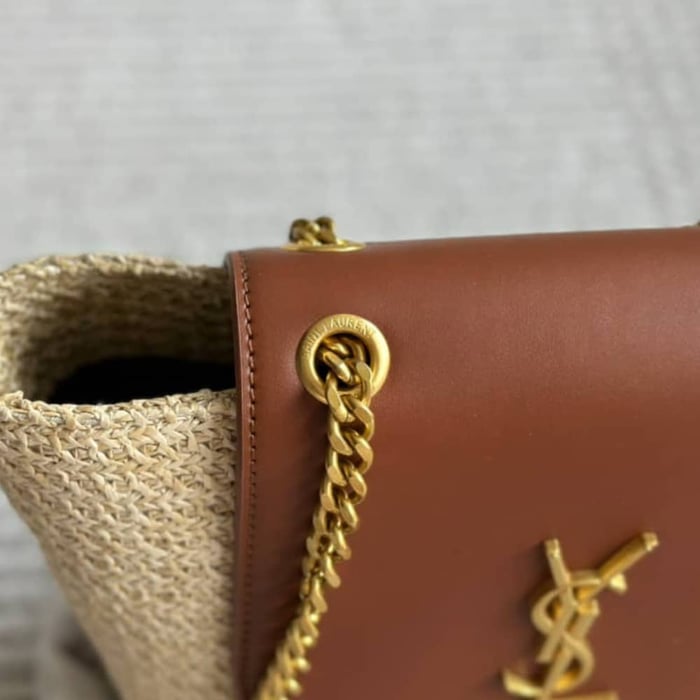 Saint Laurent Mini Manon In Raffia And Aged Vegetable Tanned Leather Naturel 23Cm