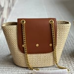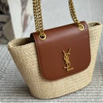 Saint Laurent Mini Manon In Raffia And Aged Vegetable Tanned Leather Naturel 23Cm