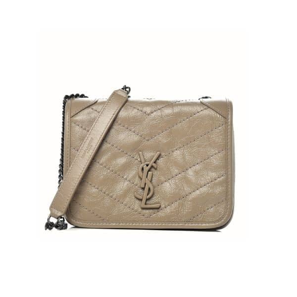 Saint Laurent Niki Vintage Leather Chain Wallet Beige 19Cm