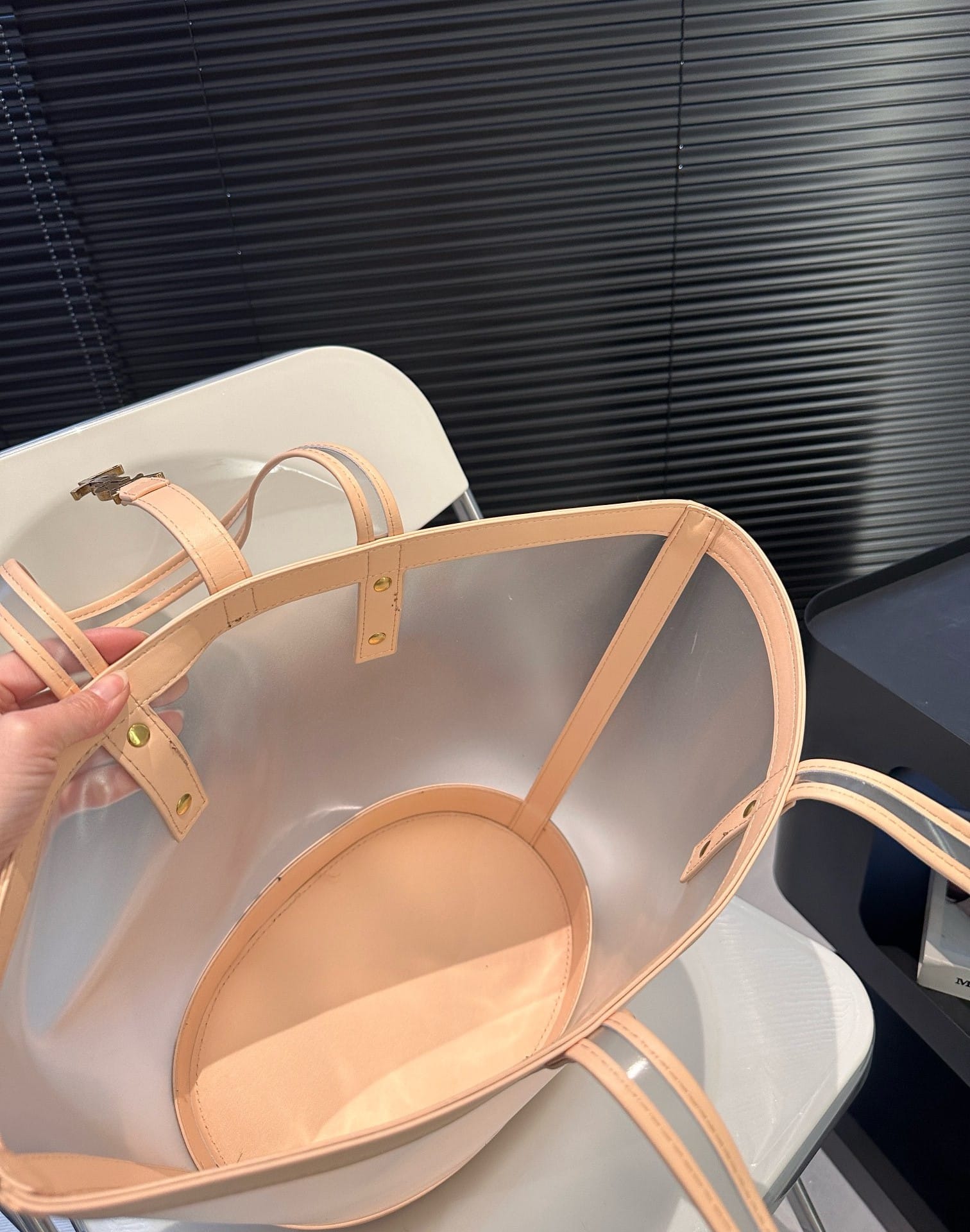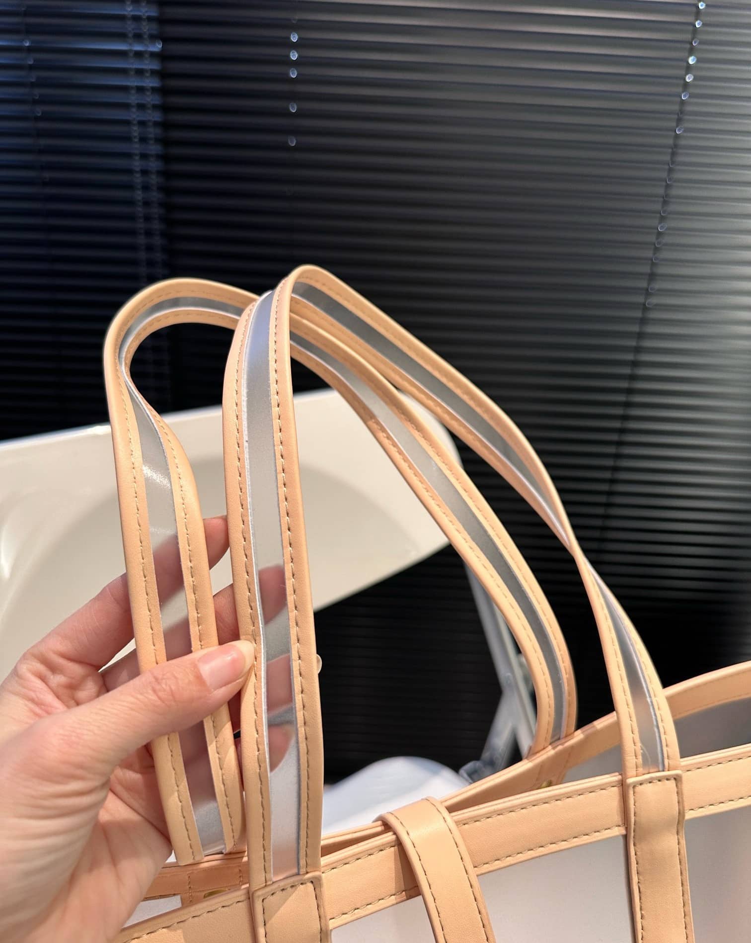 Saint Laurent Panier Medium In Vinyl And Vegetable Tanned Leather Brown 28 Cm
