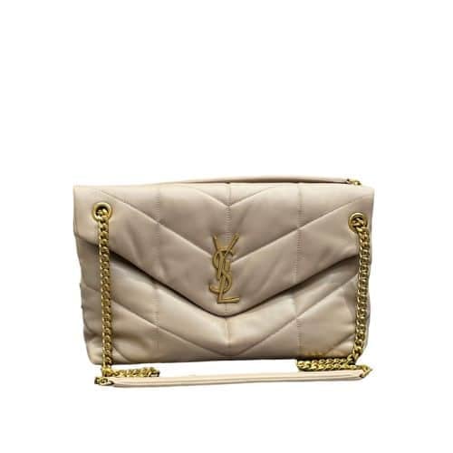 Saint Laurent Puffer Medium Chain Bag In Quilted Beige