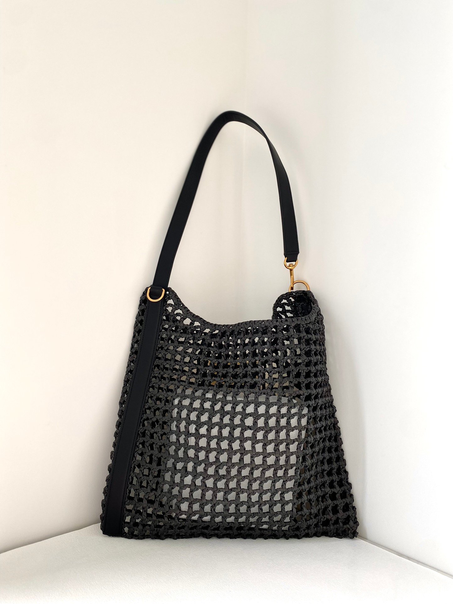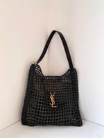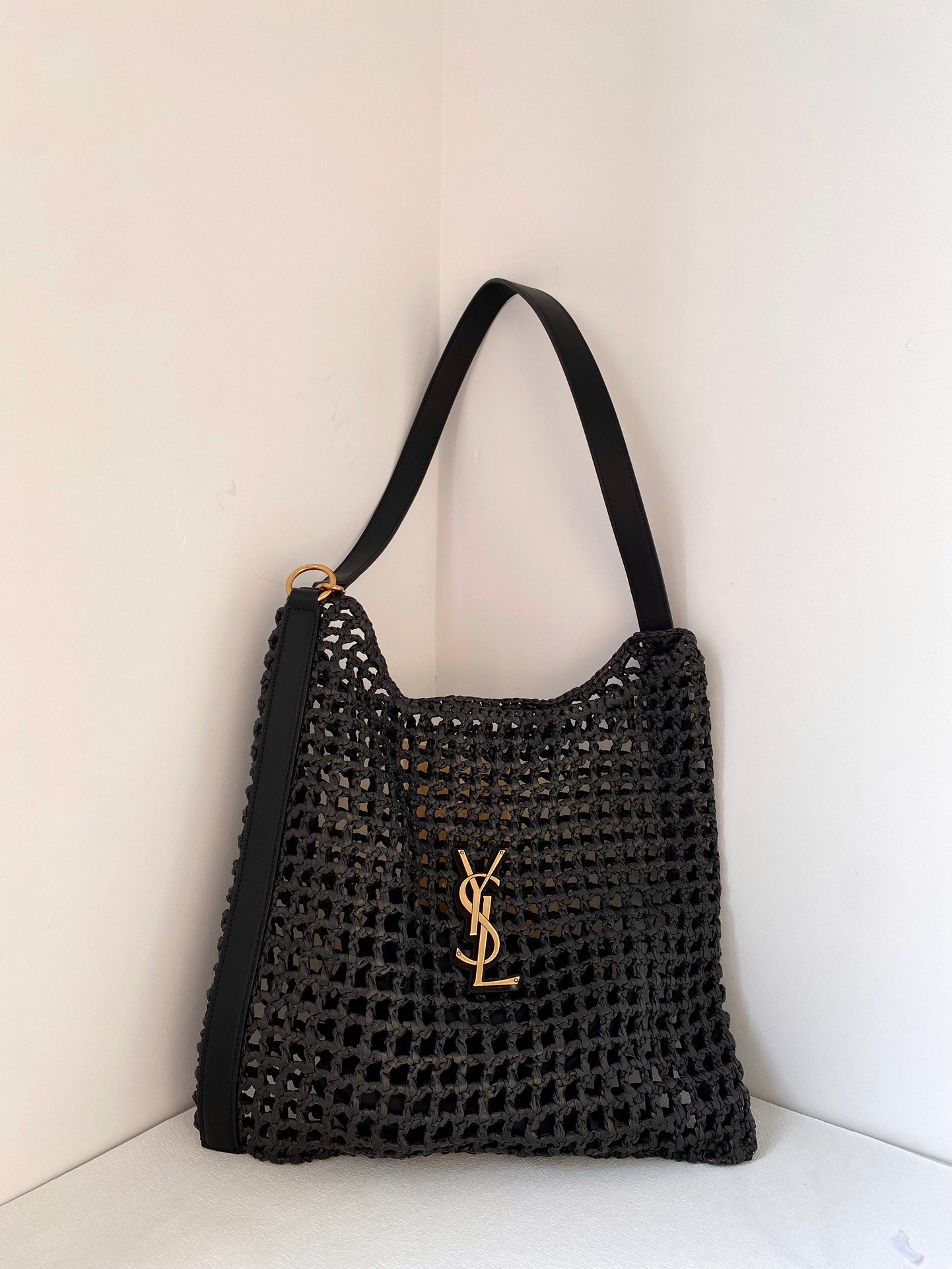 Saint Laurent Raffia And Leather Oxalis Shopping Bag Black 40cm/15.7in