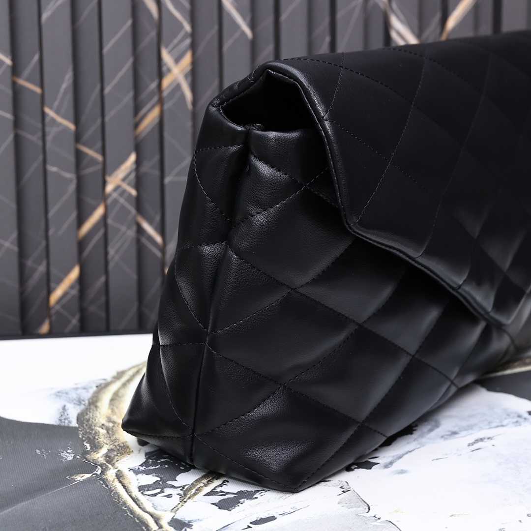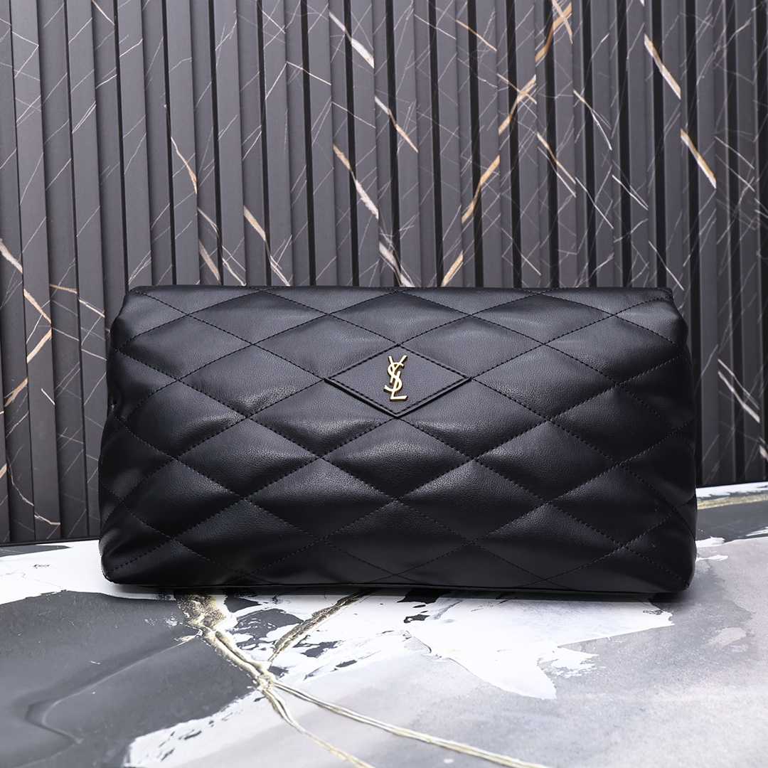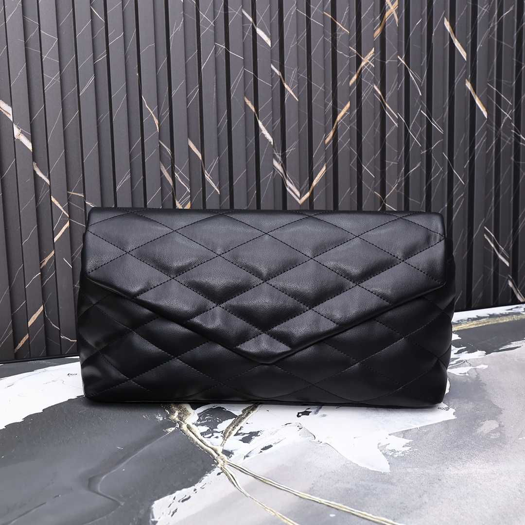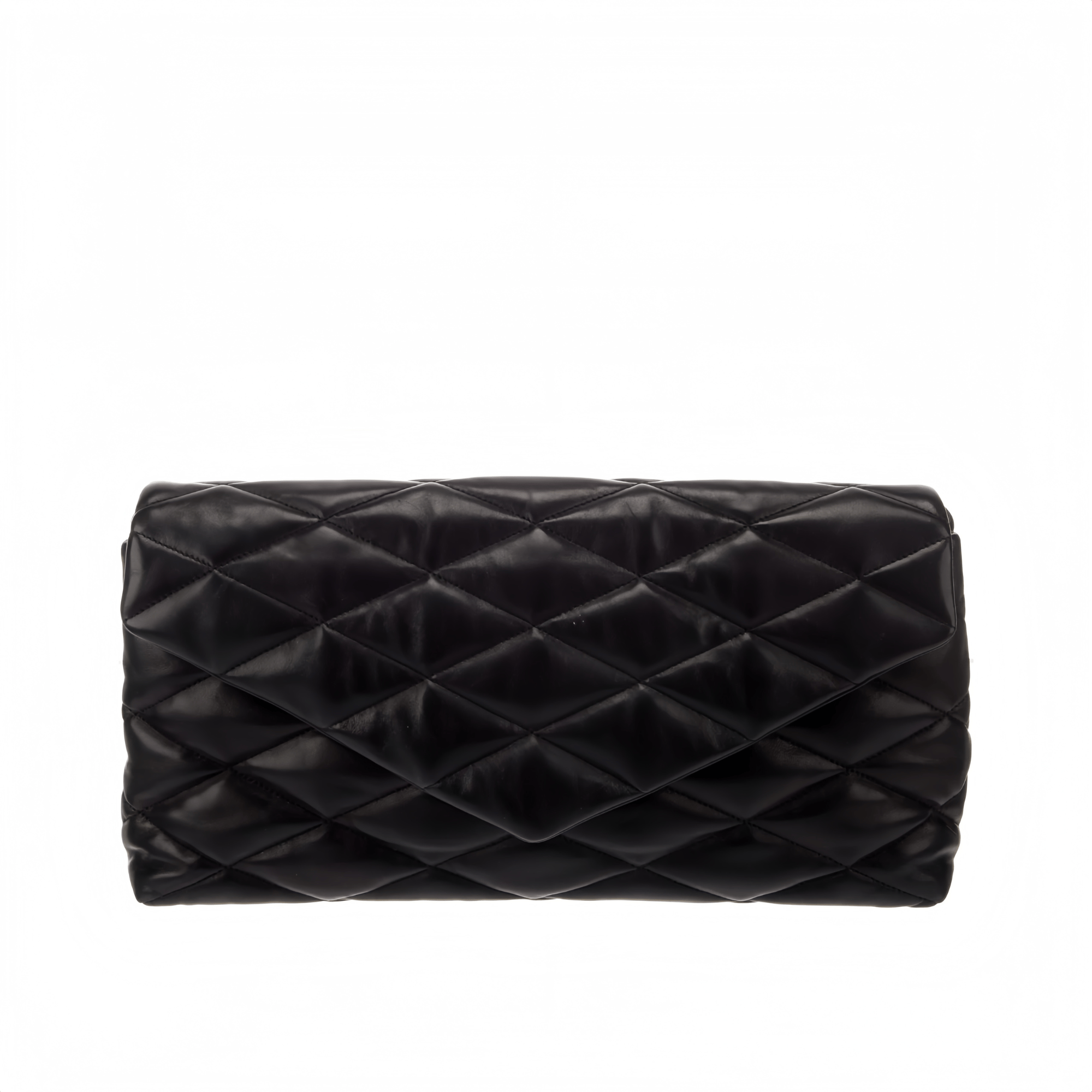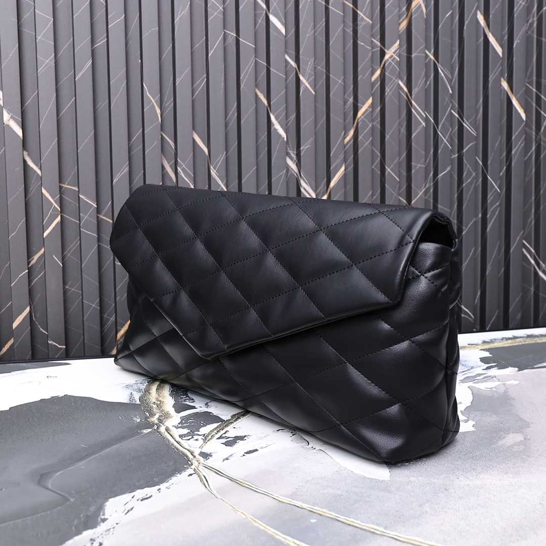 Saint Laurent Sade Puffy Leather Envelope Clutch Bag Black