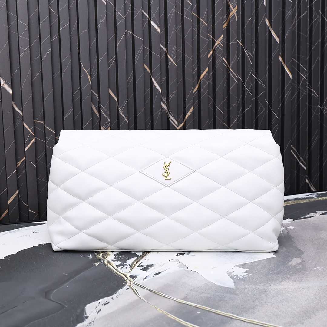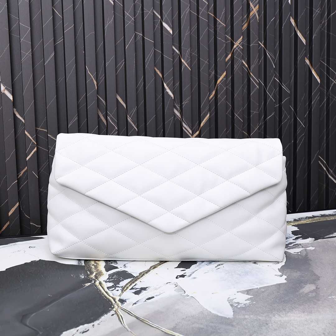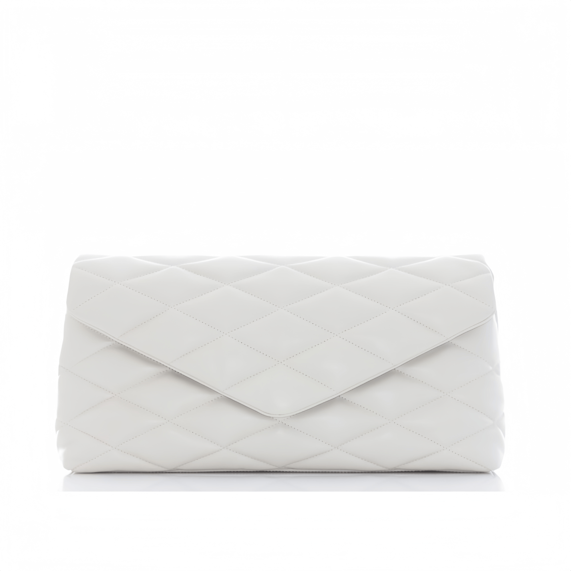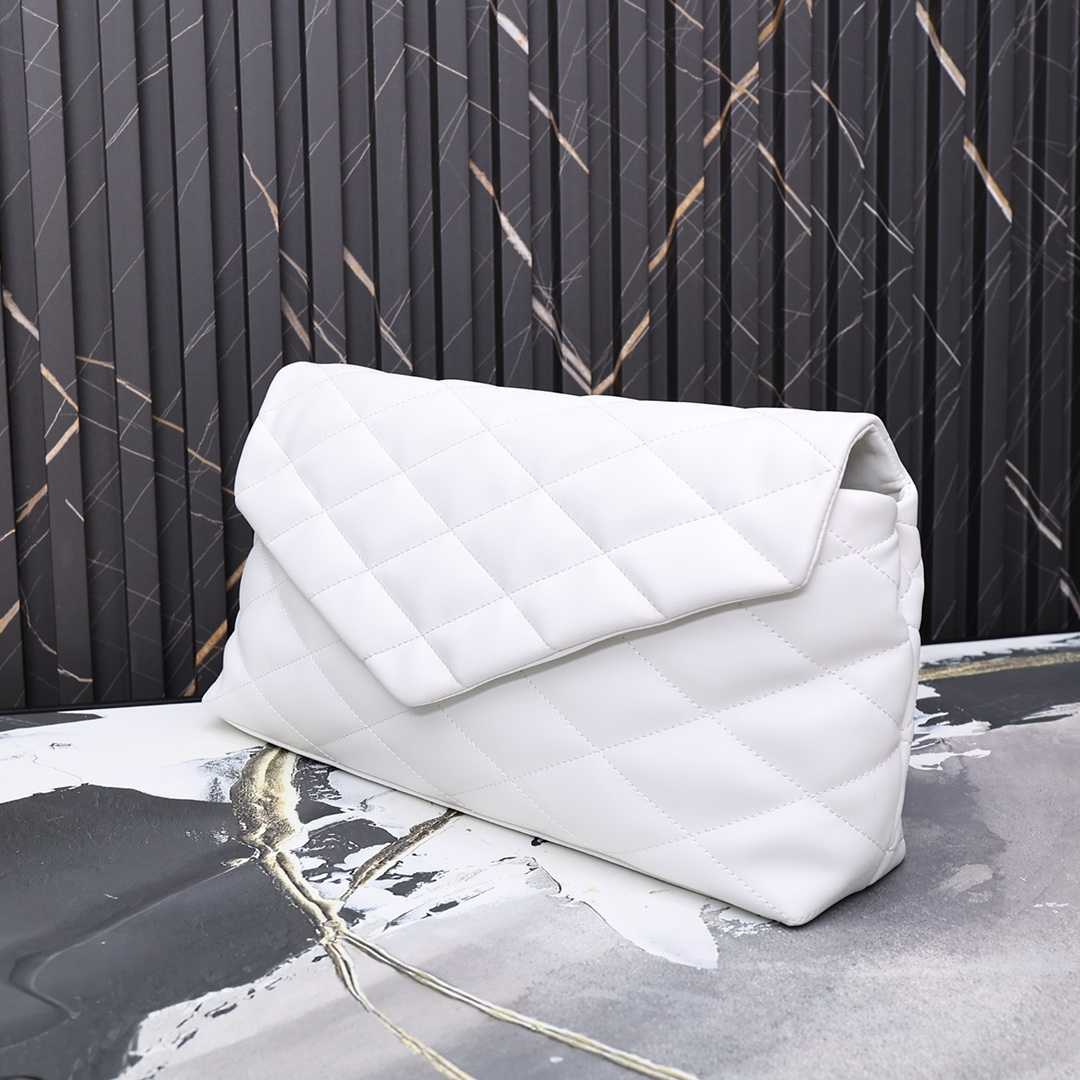 Saint Laurent Sade Puffy Leather Envelope Clutch Bag White