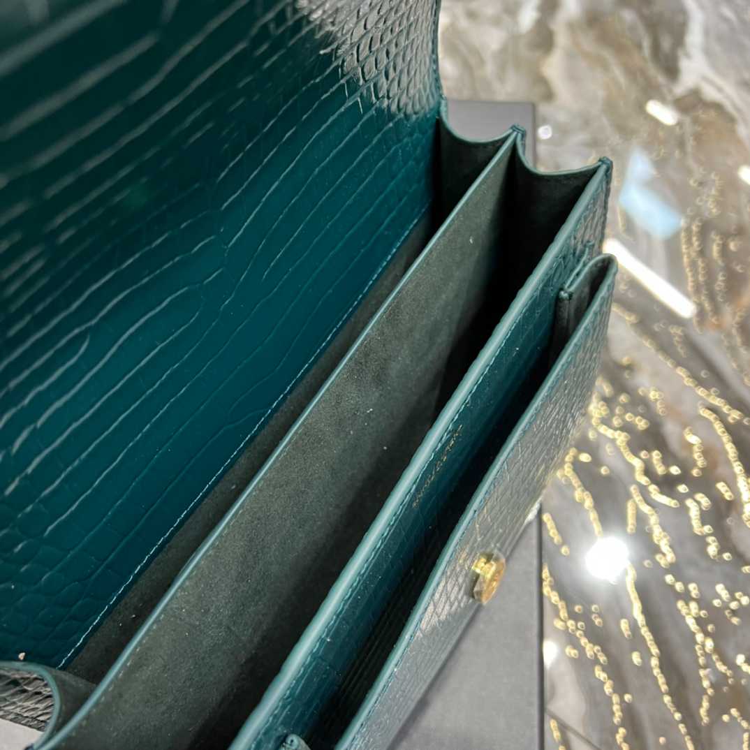 Saint Laurent Sunset Medium Chain Bag In Shiny Leather Mint