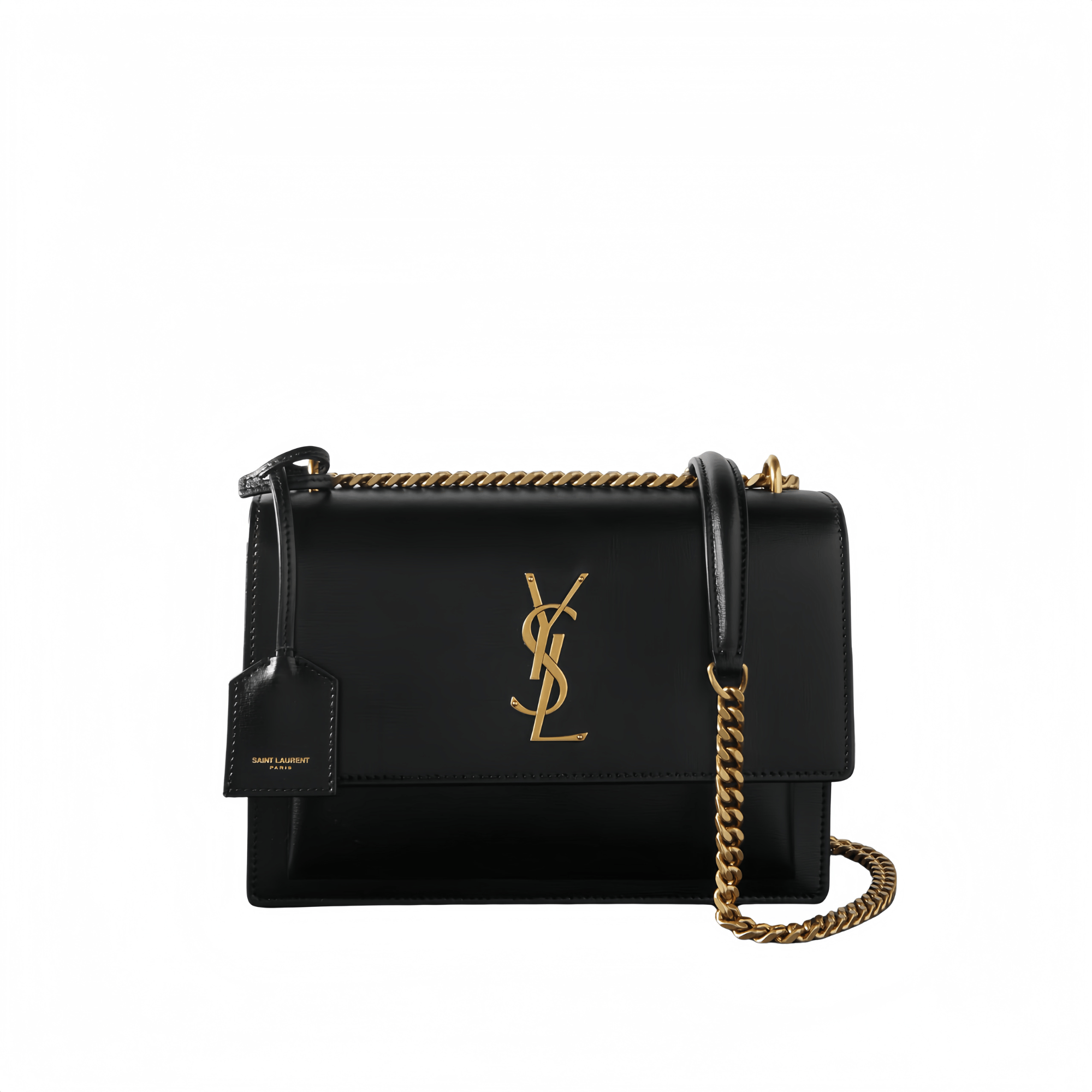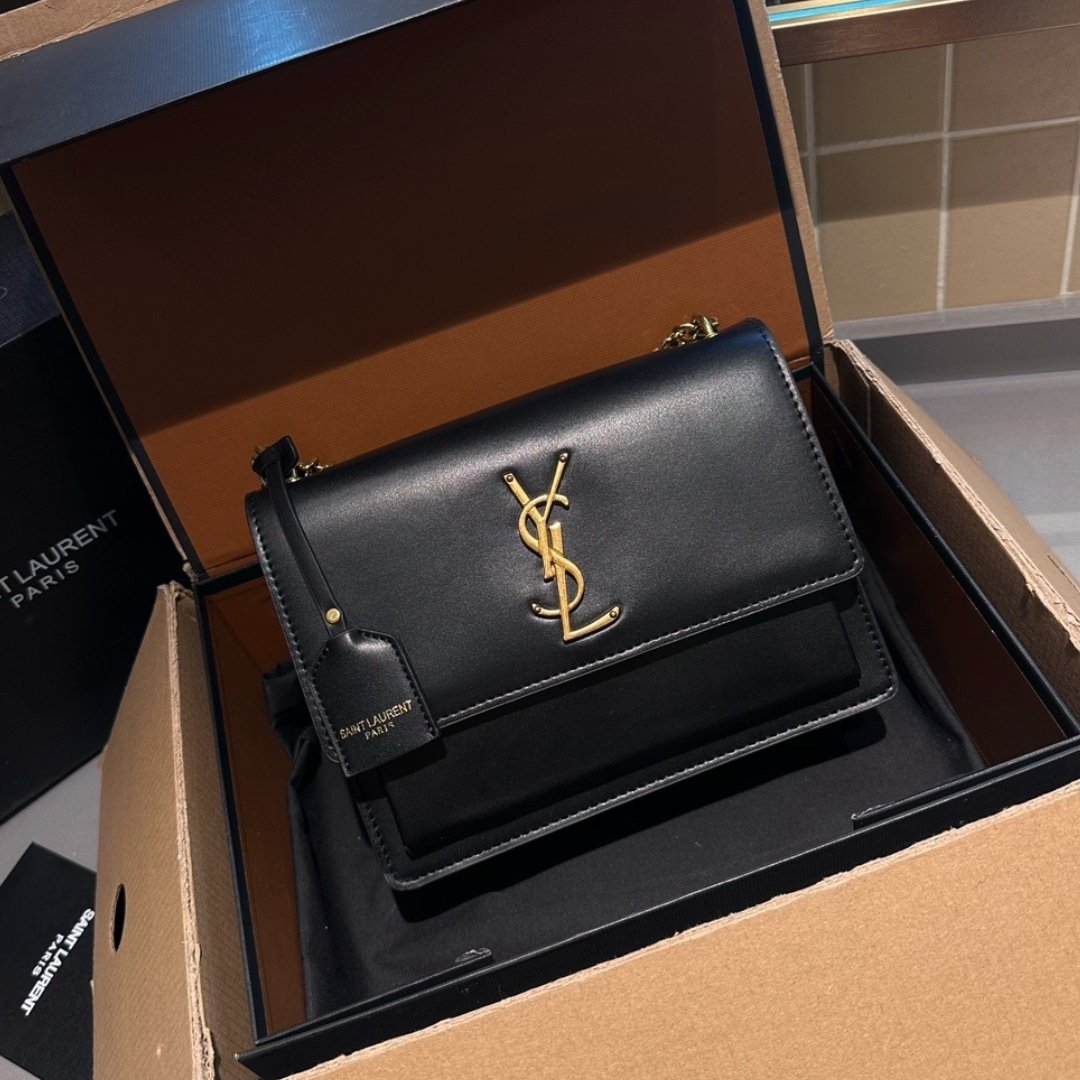 Saint Laurent Sunset Smooth Leather Shoulder Bag Black 23Cm