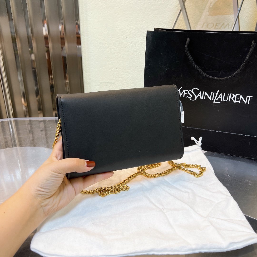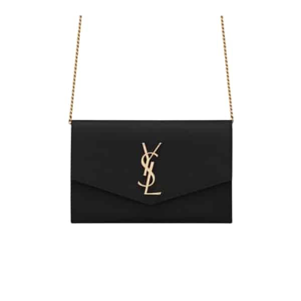 Saint Laurent Uptown Chain Wallet In Grain De Poudre Embossed Black 19Cm