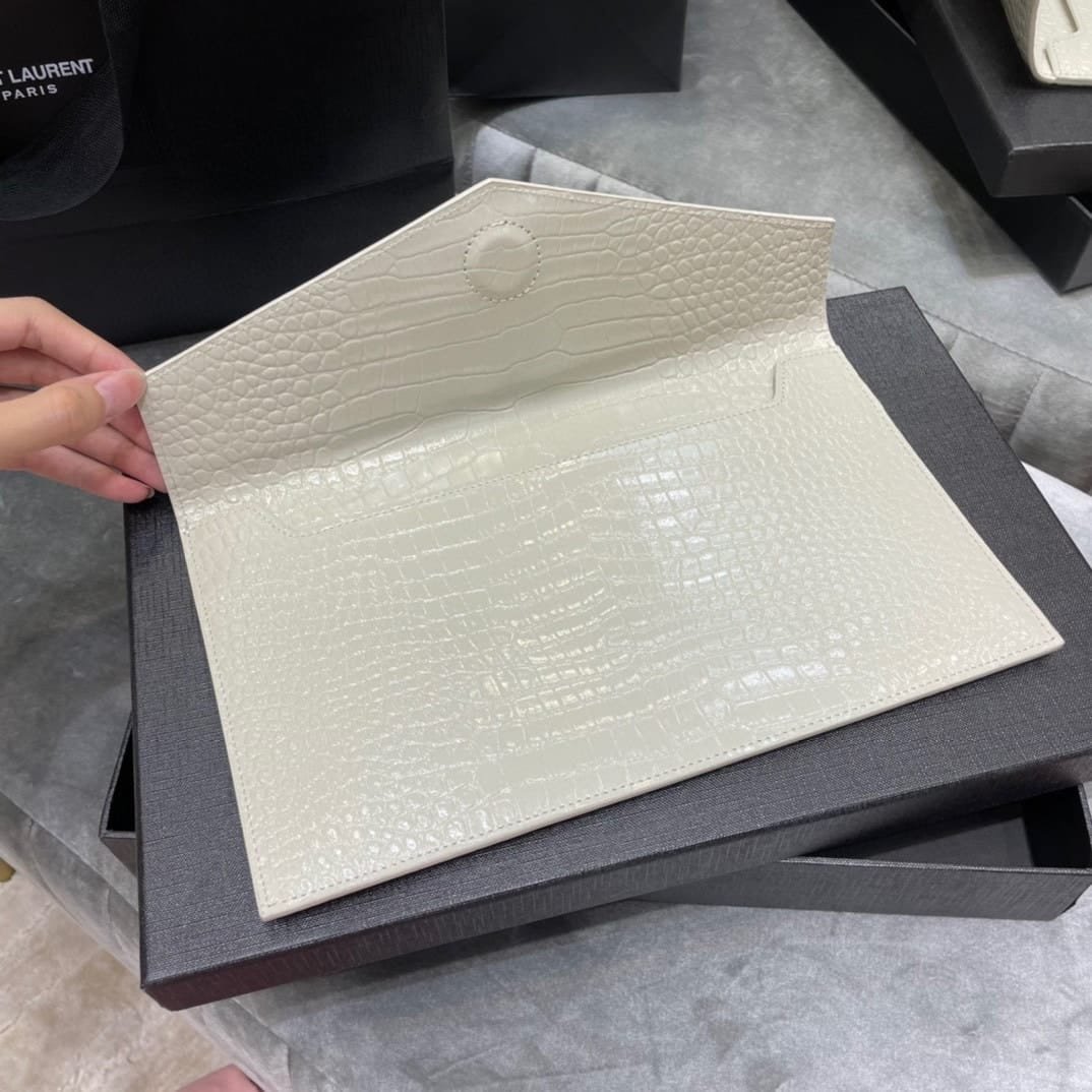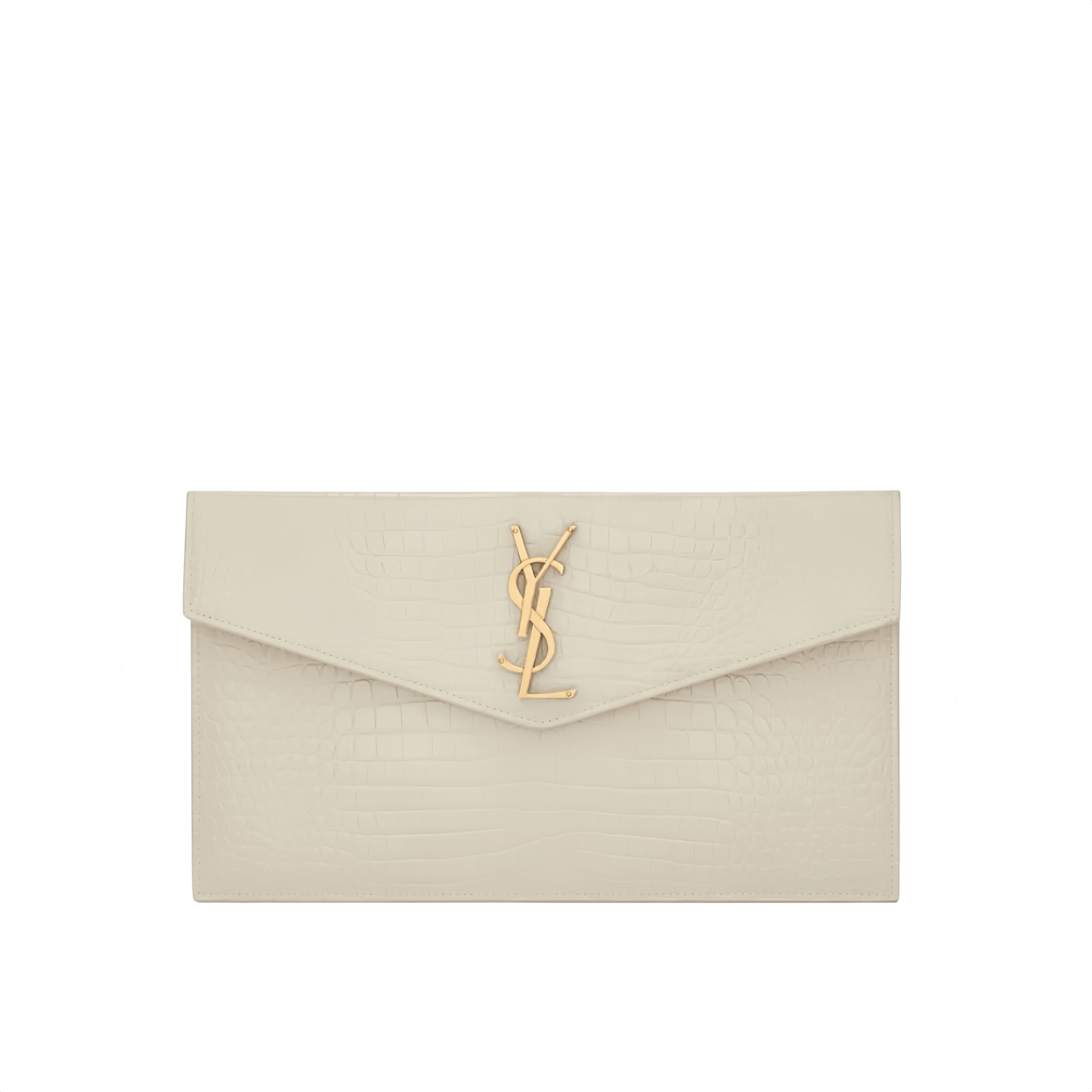 Saint Laurent Uptown Pouch In Crocodile Embossed Shiny Leather