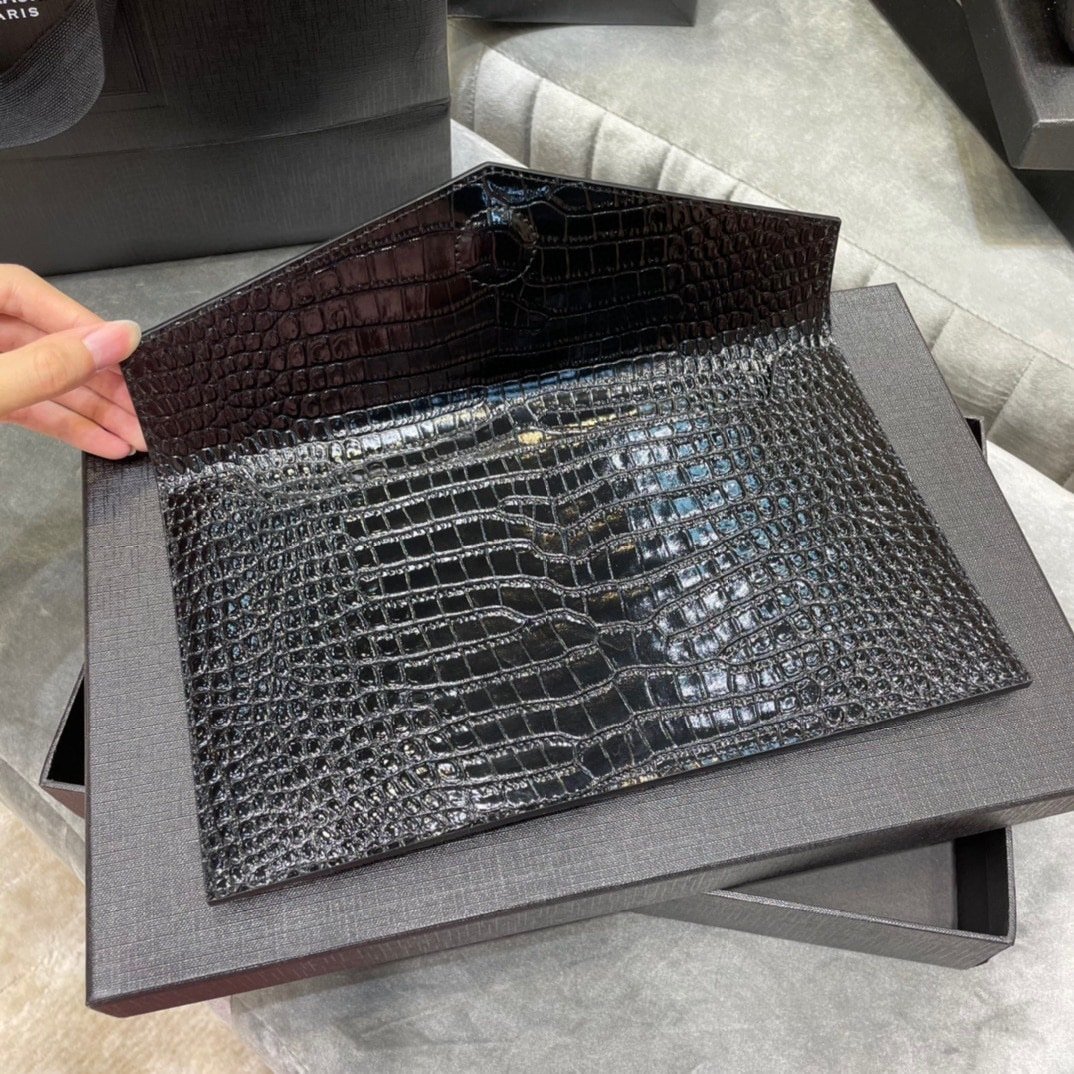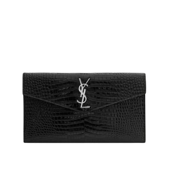 Saint Laurent Uptown Pouch In Crocodile Embossed Shiny Leather