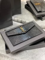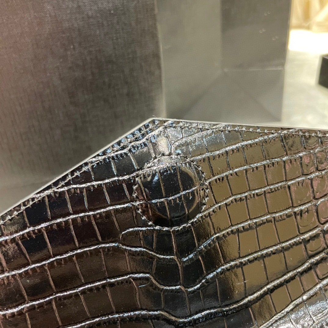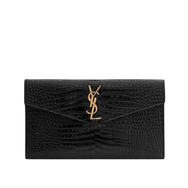 Saint Laurent Uptown Pouch In Crocodile Embossed Shiny Leather
