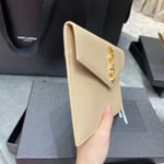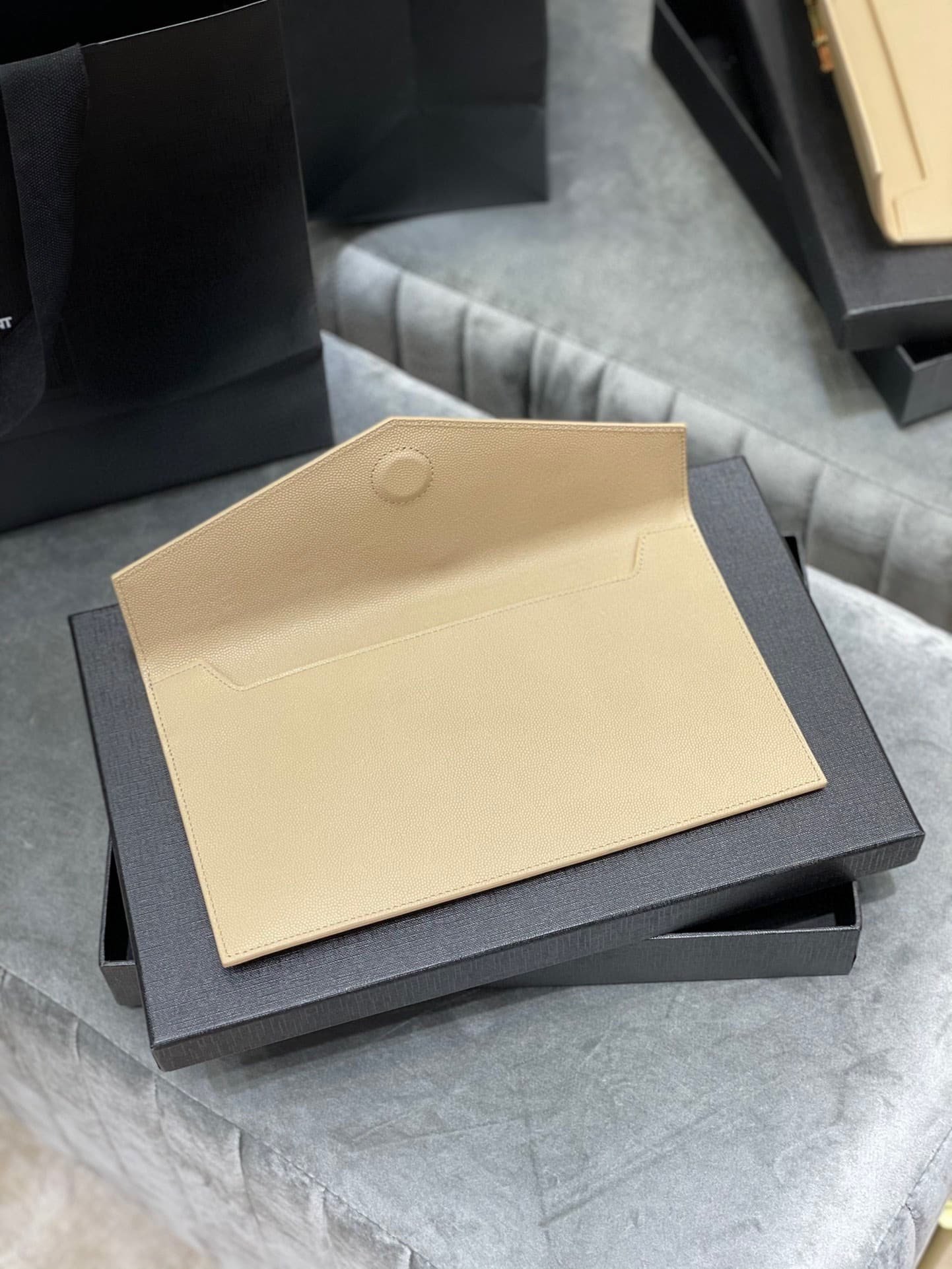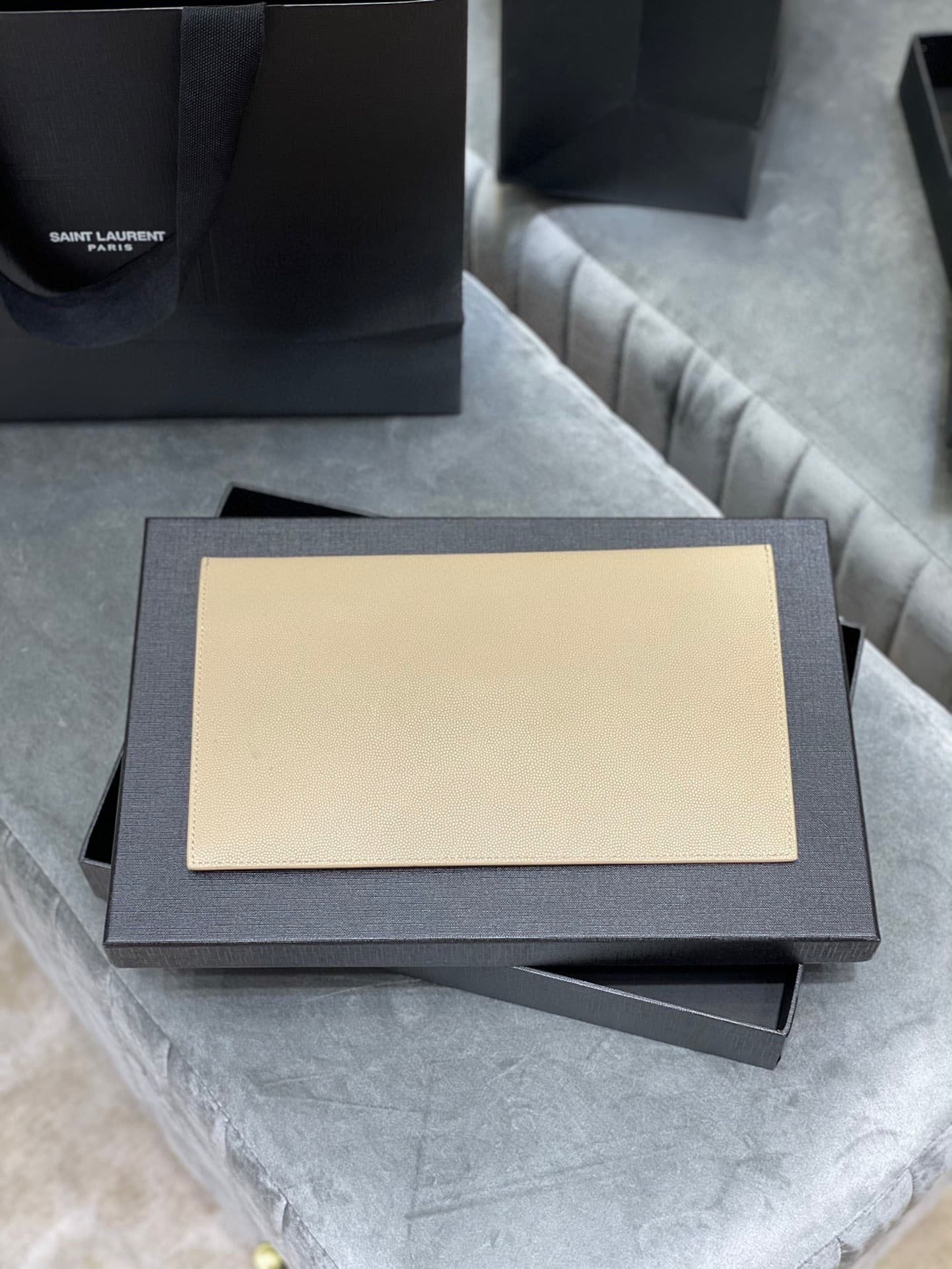 Saint Laurent Uptown Pouch In Grain De Poudre Embossed Leather Blanc Vintage