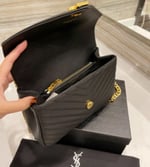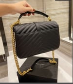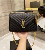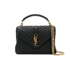 Ysl College Medium Chain In Quilted Leather Black Gold