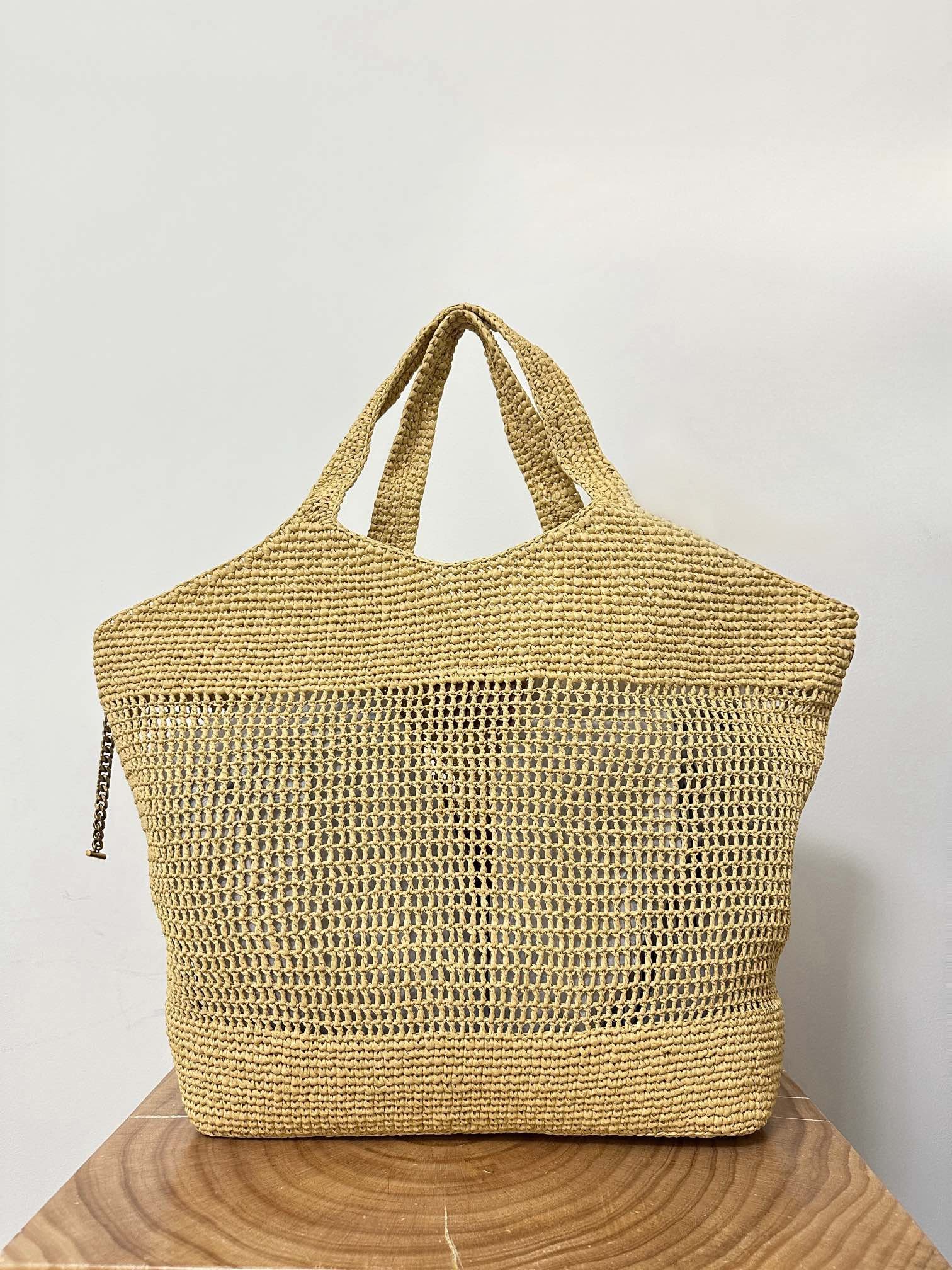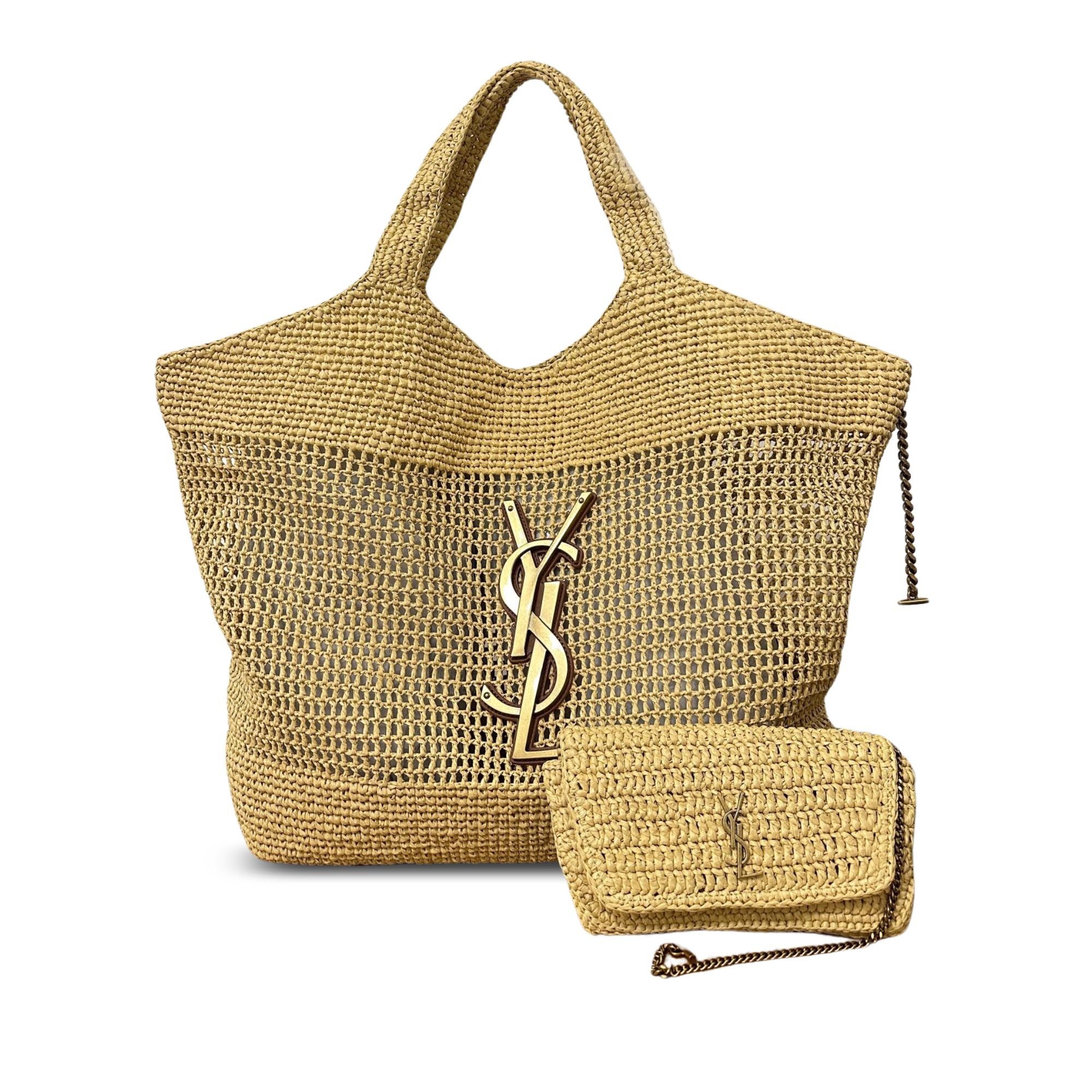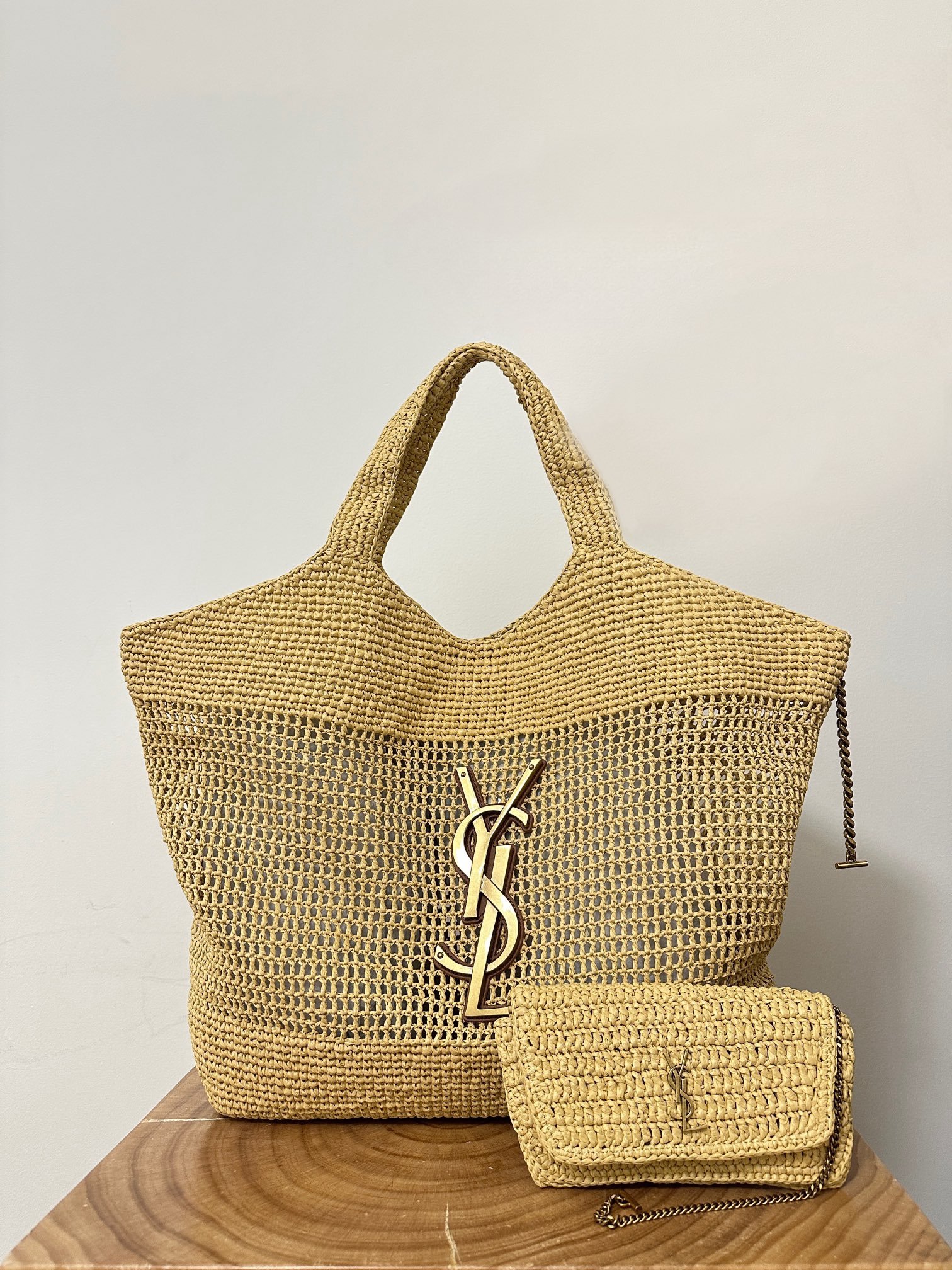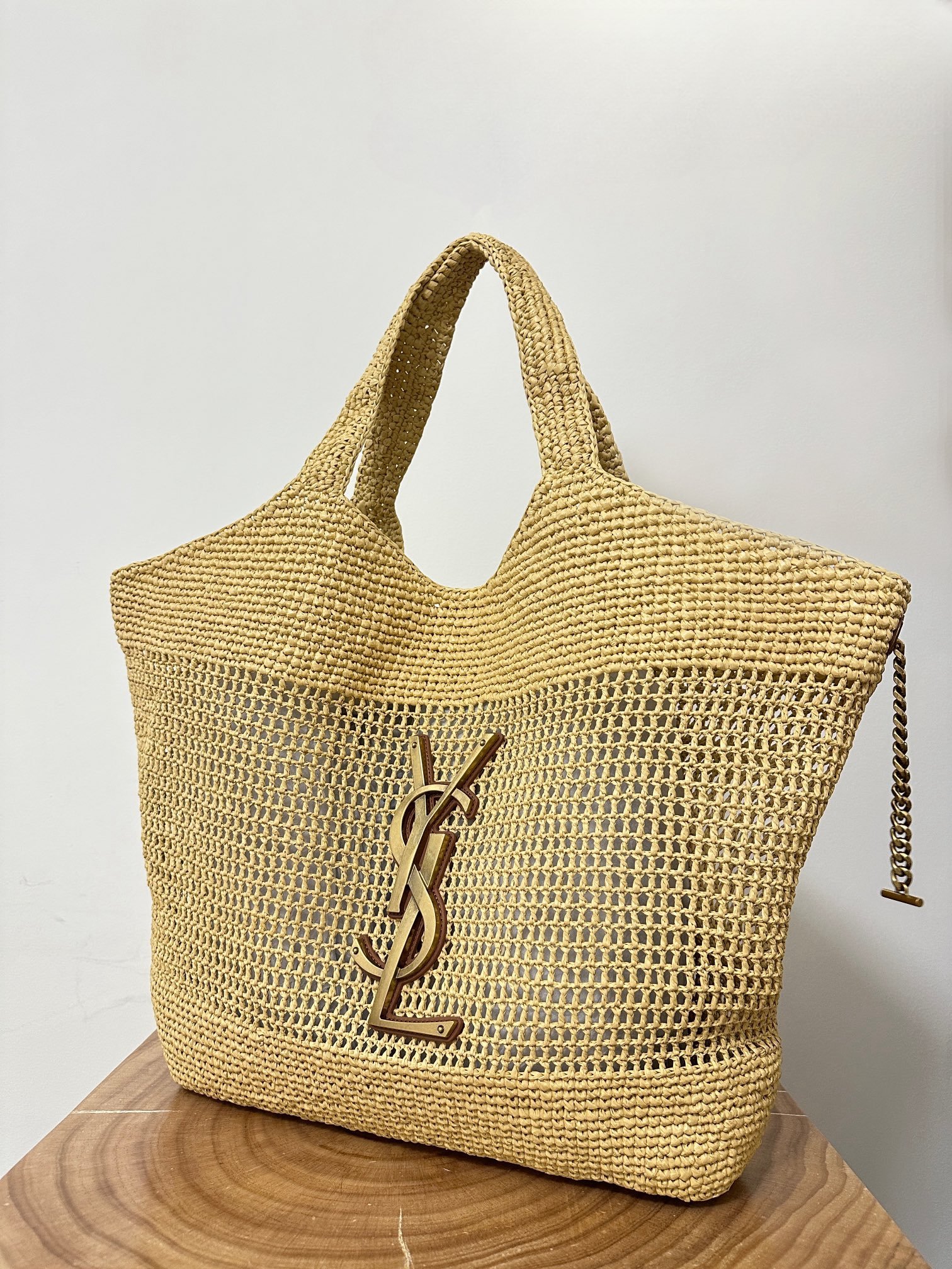 YSL Saint Laurent Icare Raffia Shopping Tote Bag – Natural Beige 43cm/ 16.9in