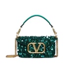 Valentino Garavani Locò Embellished Shoulder Bag Blue 28Cm