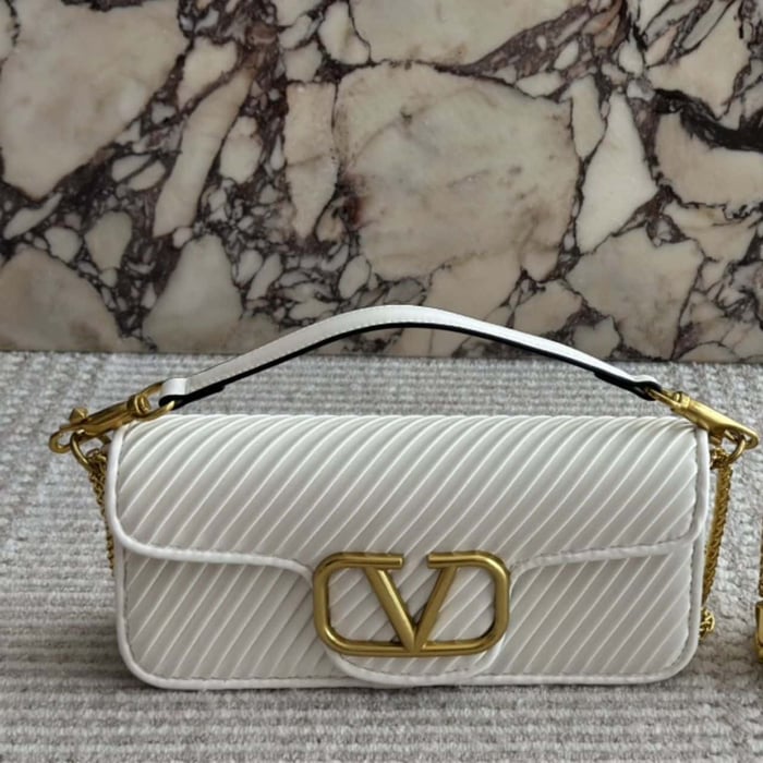 Valentino Garavani Locò Shoulder Bag In Pleated Nappa White 26Cm