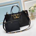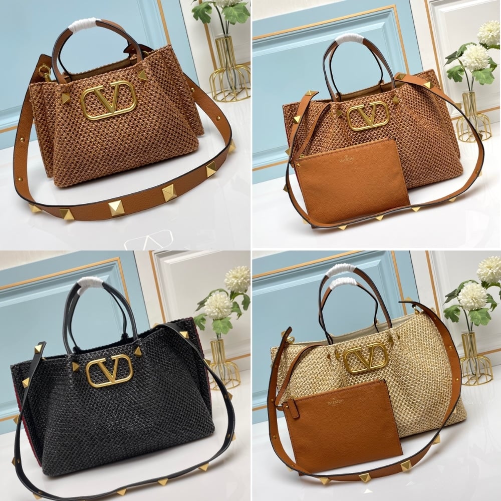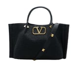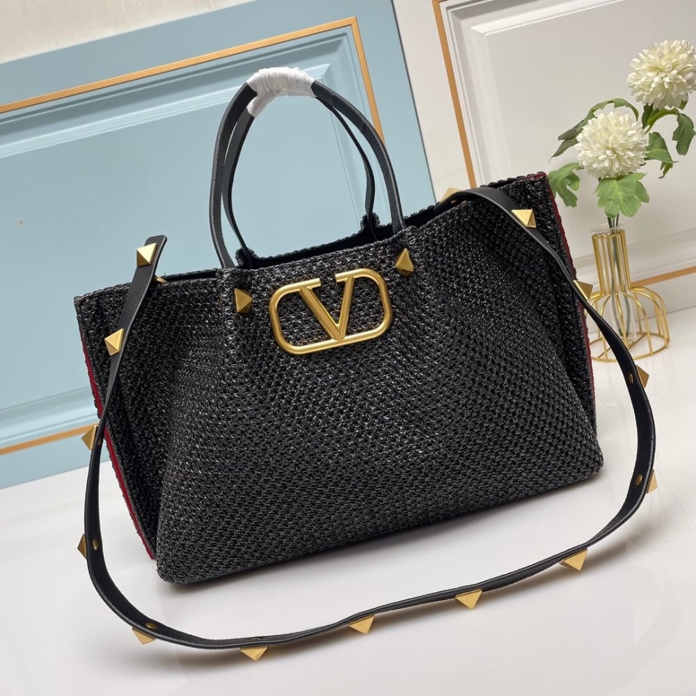 Valentino Garavani Medium Straw Summer Tote Black 35Cm