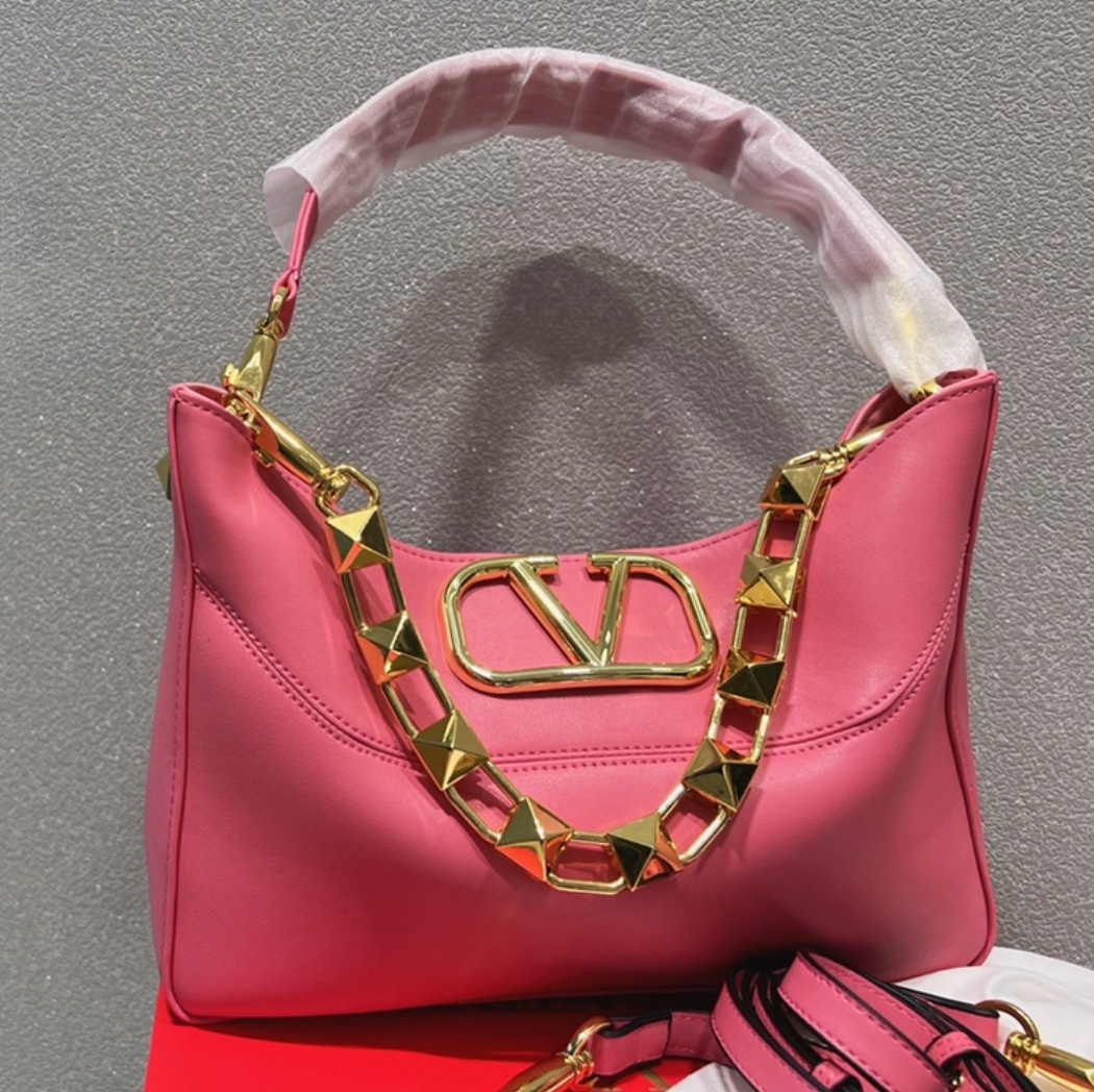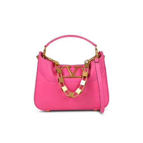 Valentino Garavani Small Stud Sign Leather Hobo Bag In Pink