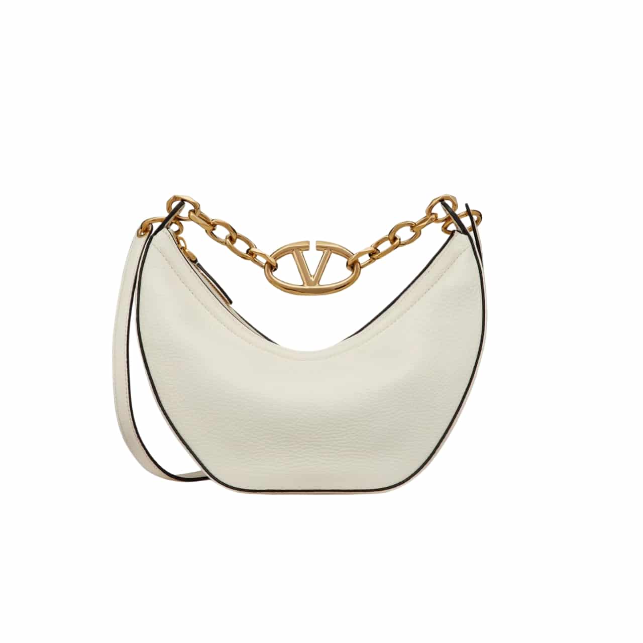 Valentino Garavani Small Vlogo Moon Hobo Bag In Grainy Calfskin With Chain White 29Cm 4W2B0N08Jdk 098